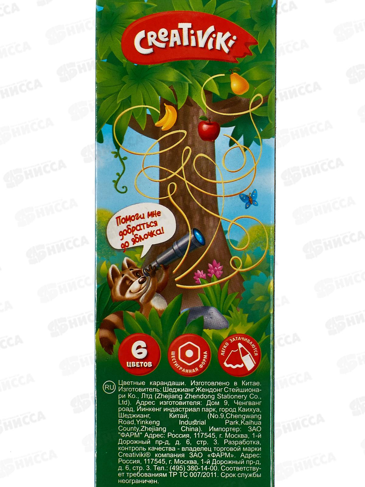 Карандаши 6цветов Creativiki шестигранный дерево КЦ06КР*24/480