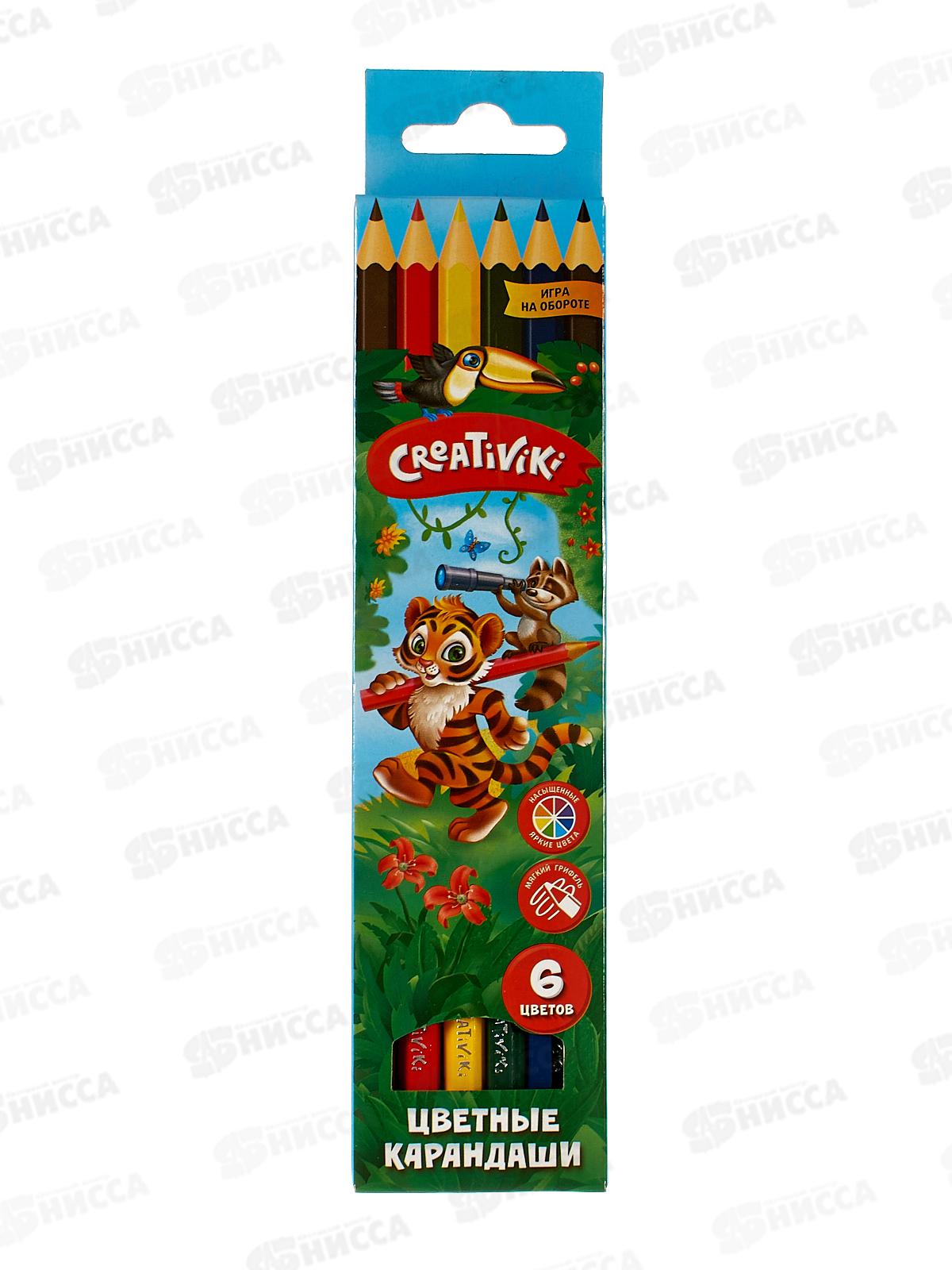 Код:304205; Карандаши 6цветов Creativiki шестигранный дерево КЦ06КР*24/480
