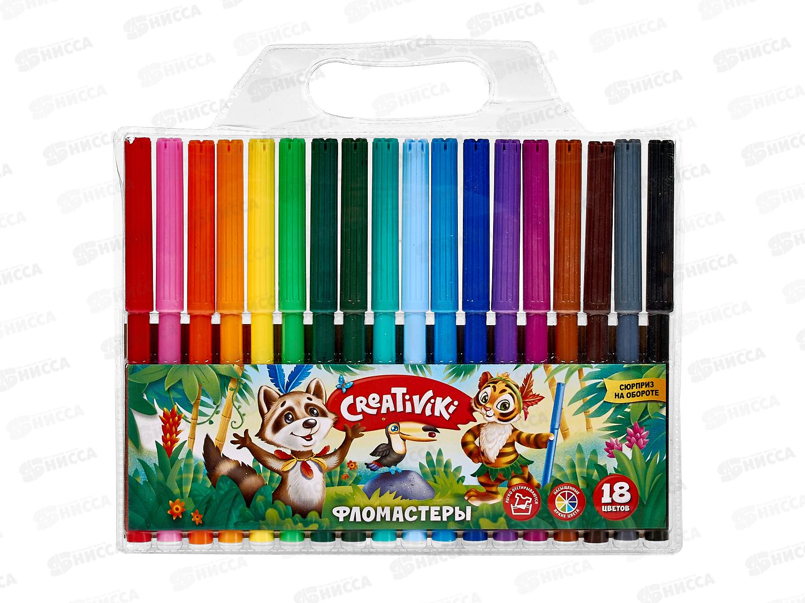 Код:304216; Фломастеры 18 цветов Creativiki круглый корпус ФЛВ18КР*12/144