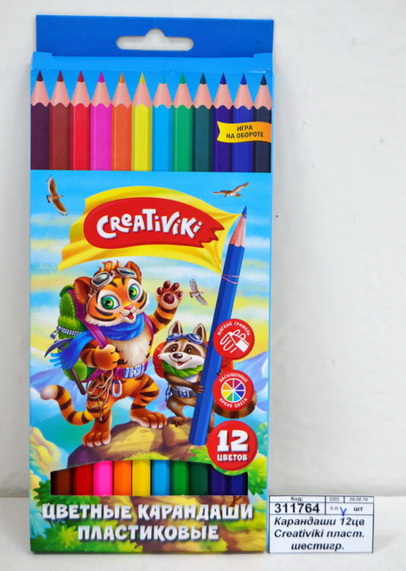 Код:311764; Карандаши 12цветов Creativiki пластиковые шестигранные. ЦКП12КР/Р *12/240