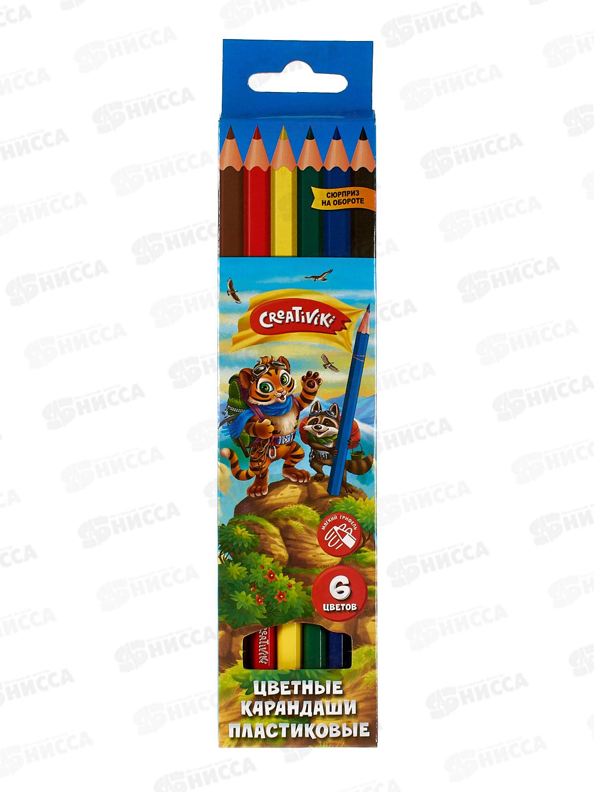 Код:311766; Карандаши 6 цветов Creativiki пластиковые шестигранные. ЦКП06КР *24/480