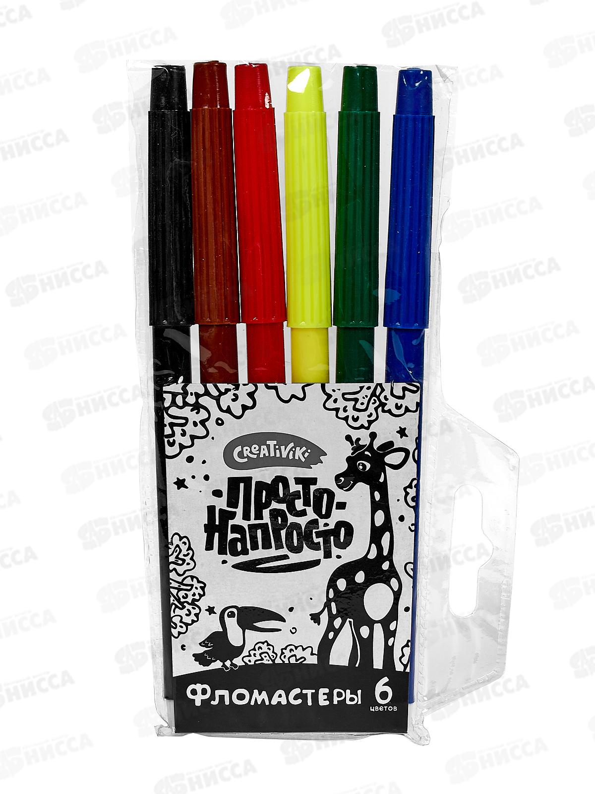 Код:527590; Фломастеры 6 цветов Creativiki ПРОСТО круглый корпус ФЛНВК06КР СРОК до 10,25*48