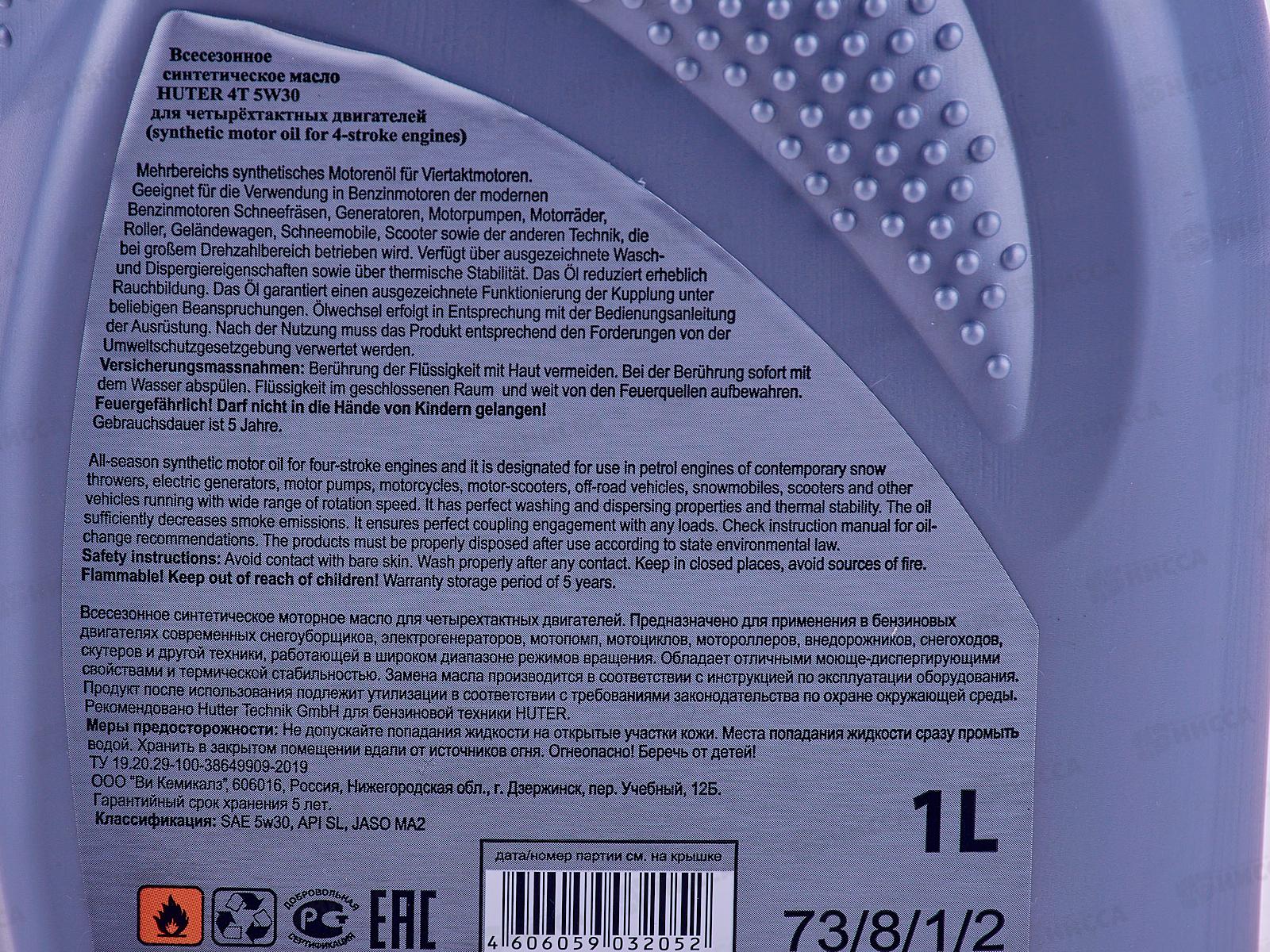 Масло моторное 4-тактное синтетическое Huter 1л 5W-30 *10