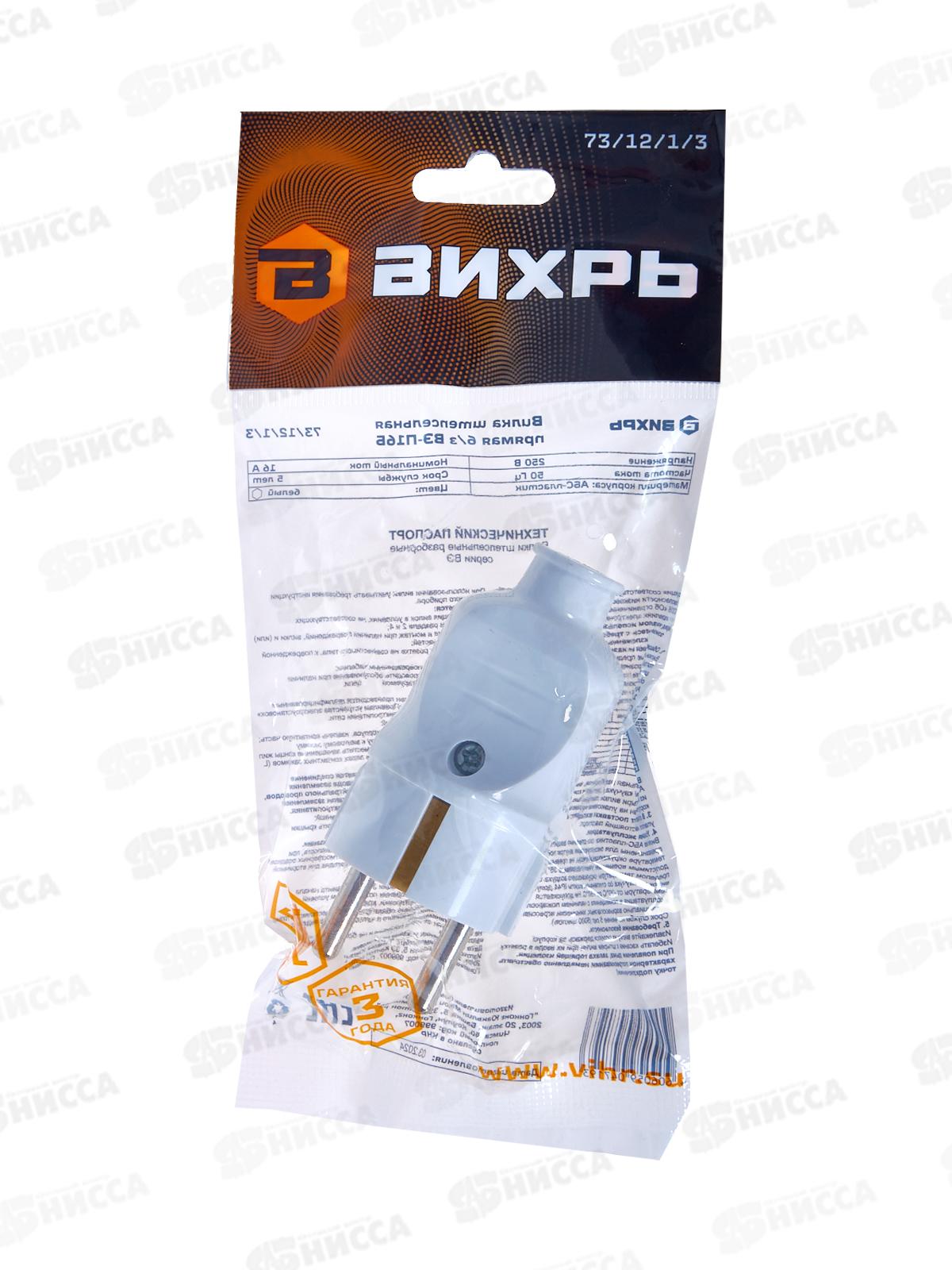 Вилка прямая с заземлением белая 16А 250В Вихрь 73/12/1/3