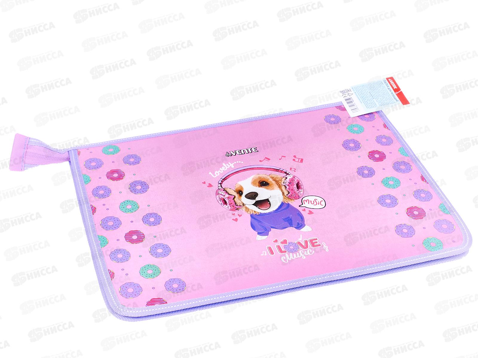 Код:437603; Папка для тетрадей deVente Music Dog на молнии, пластиковая 8053208