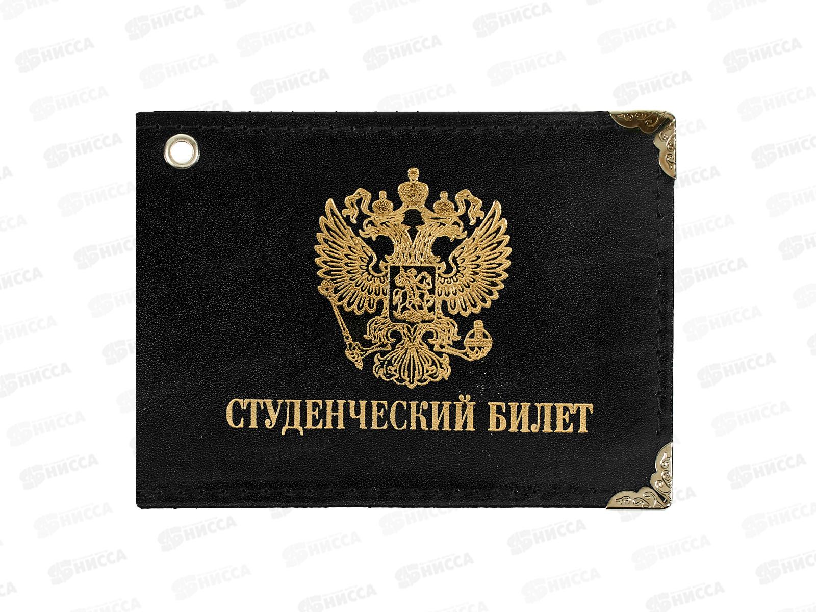 Код:587042; Обложка д/студ.билета Attomex, нат.кожа черная с золот. 306306 *25