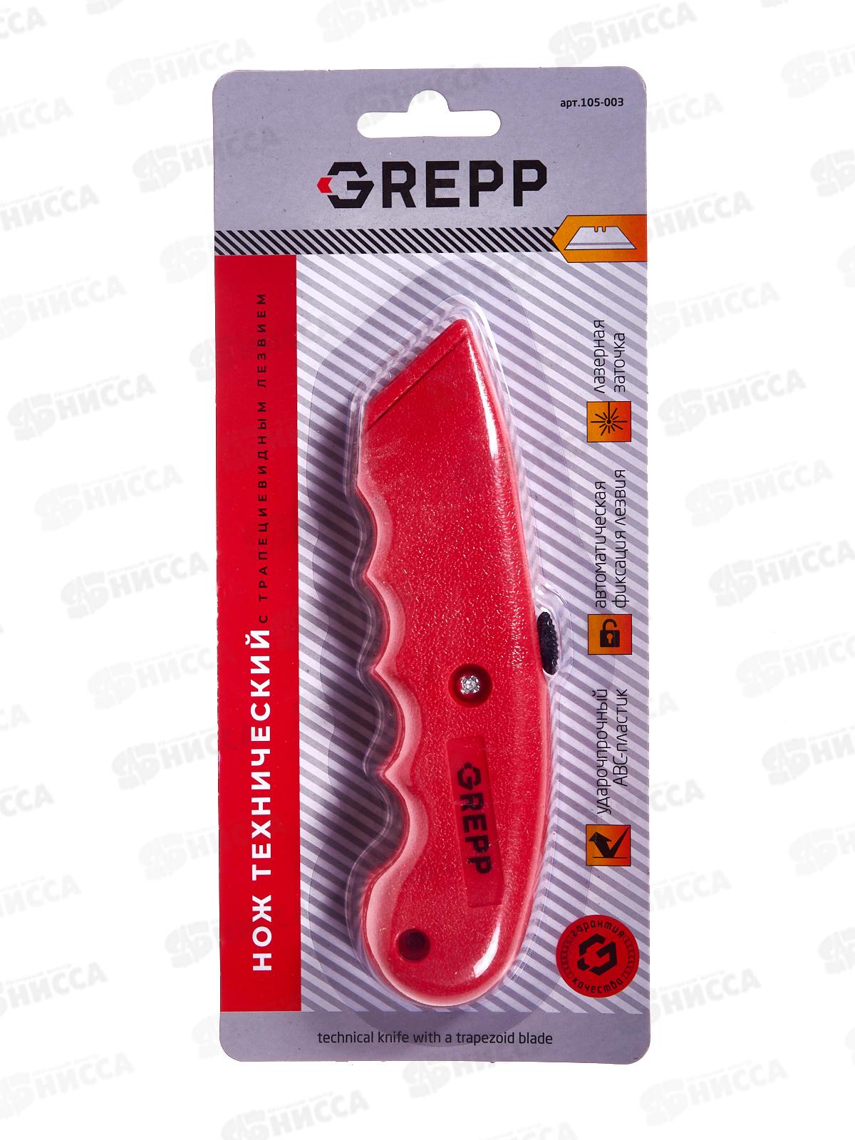 Характеристики:Бренд: GreppАртикул: 105-003Тип товара: НожНазначение: строительныйКонструкция: выдвижнойМатериал корпуса: пластикФорма лезвия: трапеци...