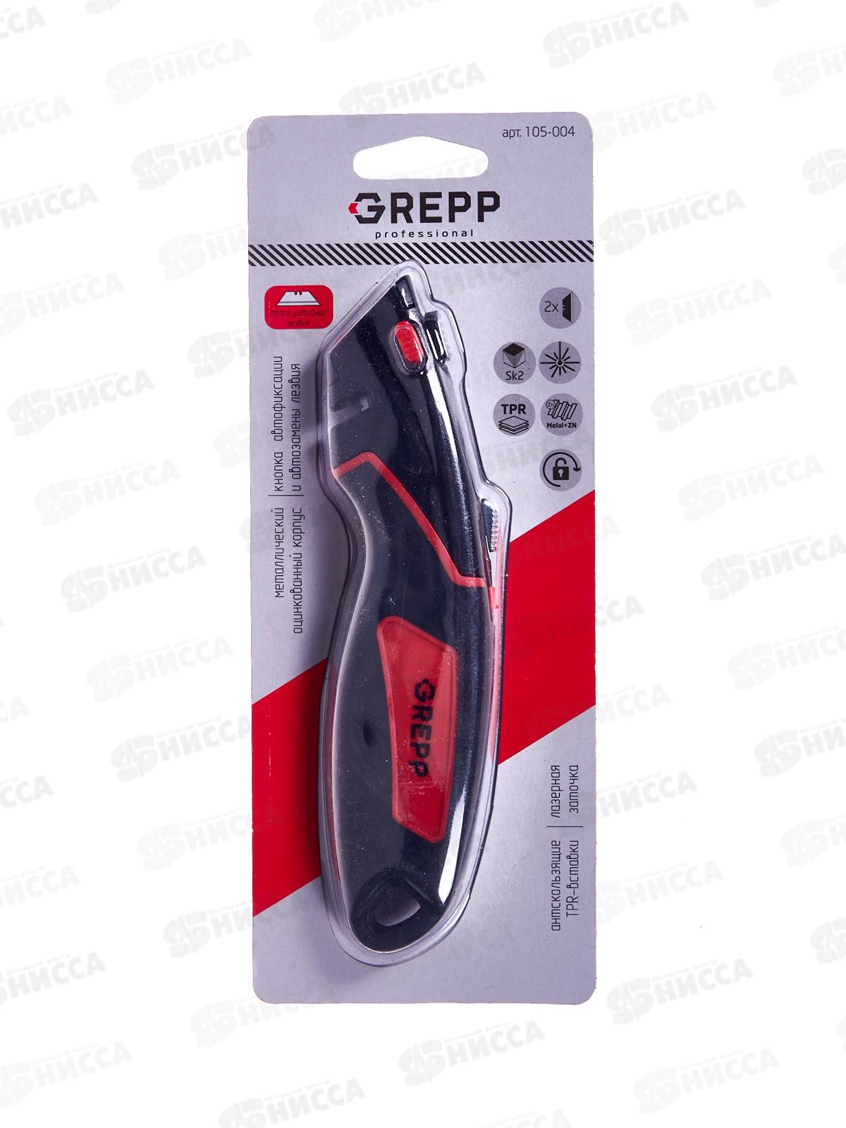 Характеристики:Бренд: GreppАртикул: 105-004Серия: "Professional"Тип товара: НожНазначение: строительныйКонструкция: выдвижнойФорма лезвия: тра...