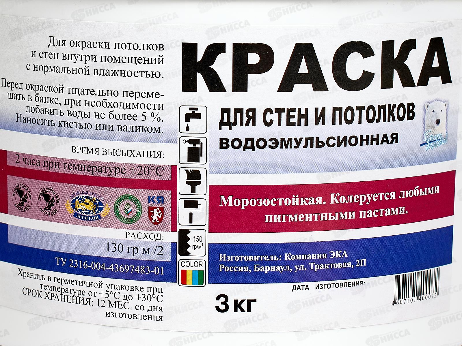 Краска водоэмульсионная для стен и потолков Святозар 3кг *4
