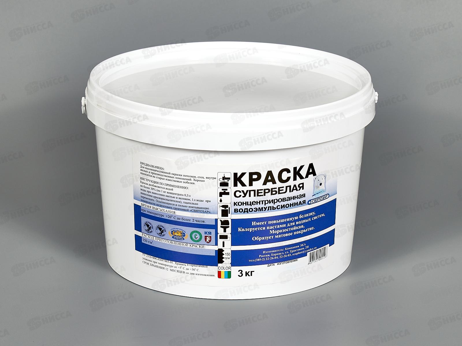 Код:056048; Краска водоэмульсионная концентрированная (супербелая) Святозар 3кг *4