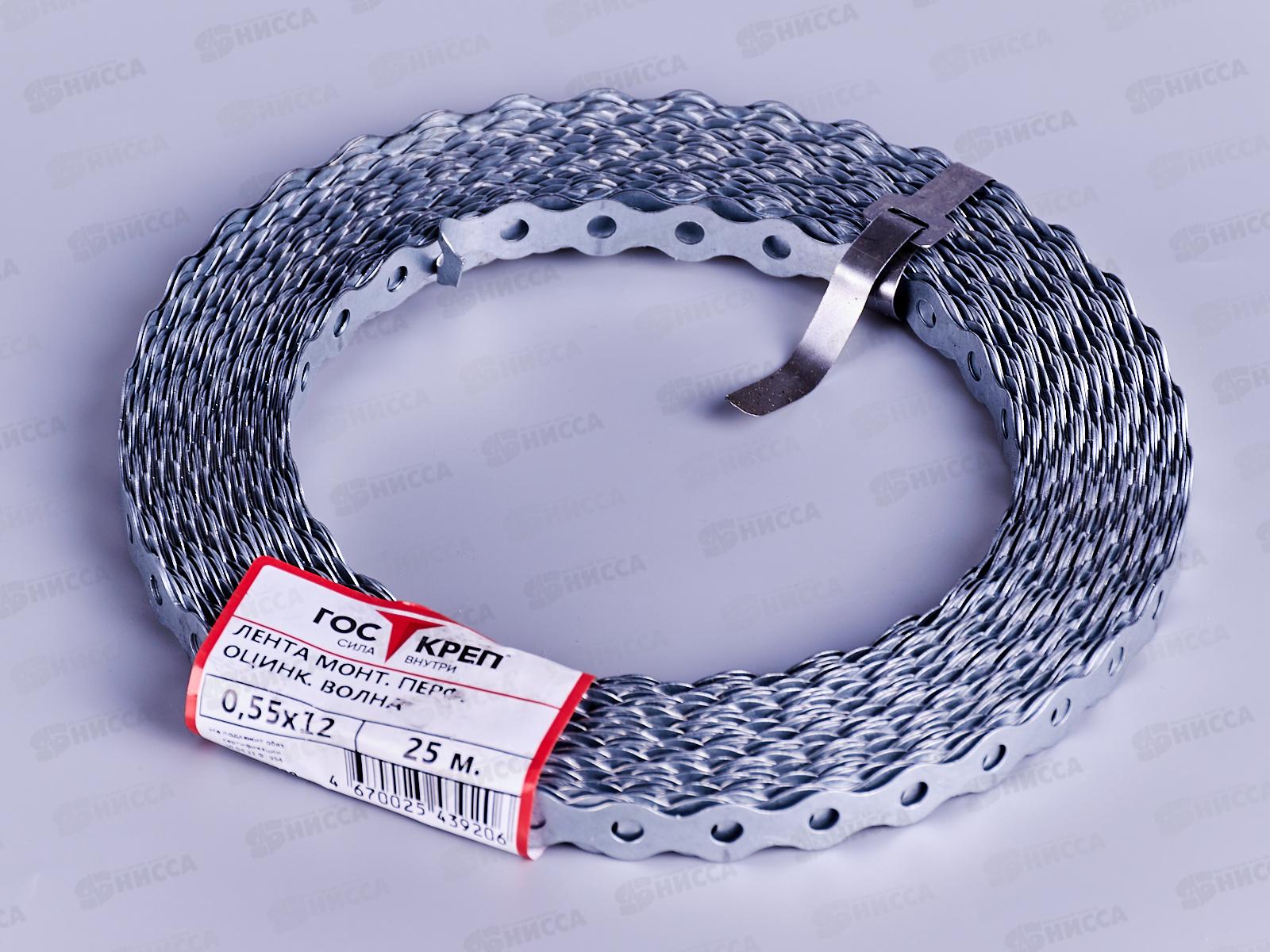 Код:487274; Лента монтажная перф. оцинк. волна 0,55х12, 25м *10