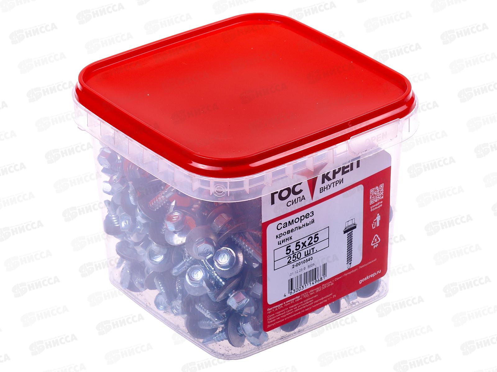 Код:517874; Саморез кровельный 5,5*25 (250шт) цинк, ГОСКРЕП контейнер