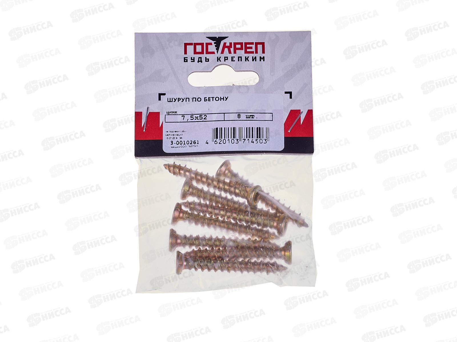 Код:456786; Шуруп по бетону 7,5*52мм (8шт), пакетик, Госкреп
