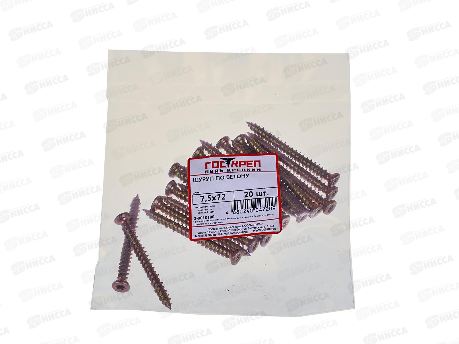 Код:456787; Шуруп по бетону 7,5*72мм (20шт), пакетик, Госкреп