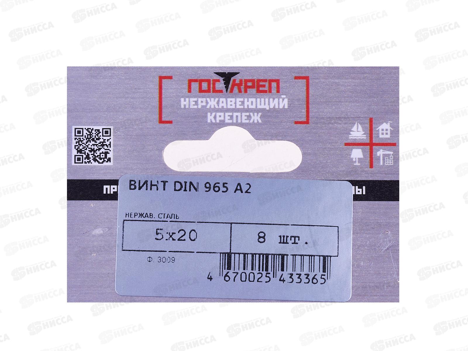 Винт (DIN965) А2 5*20 (8шт) Госкреп