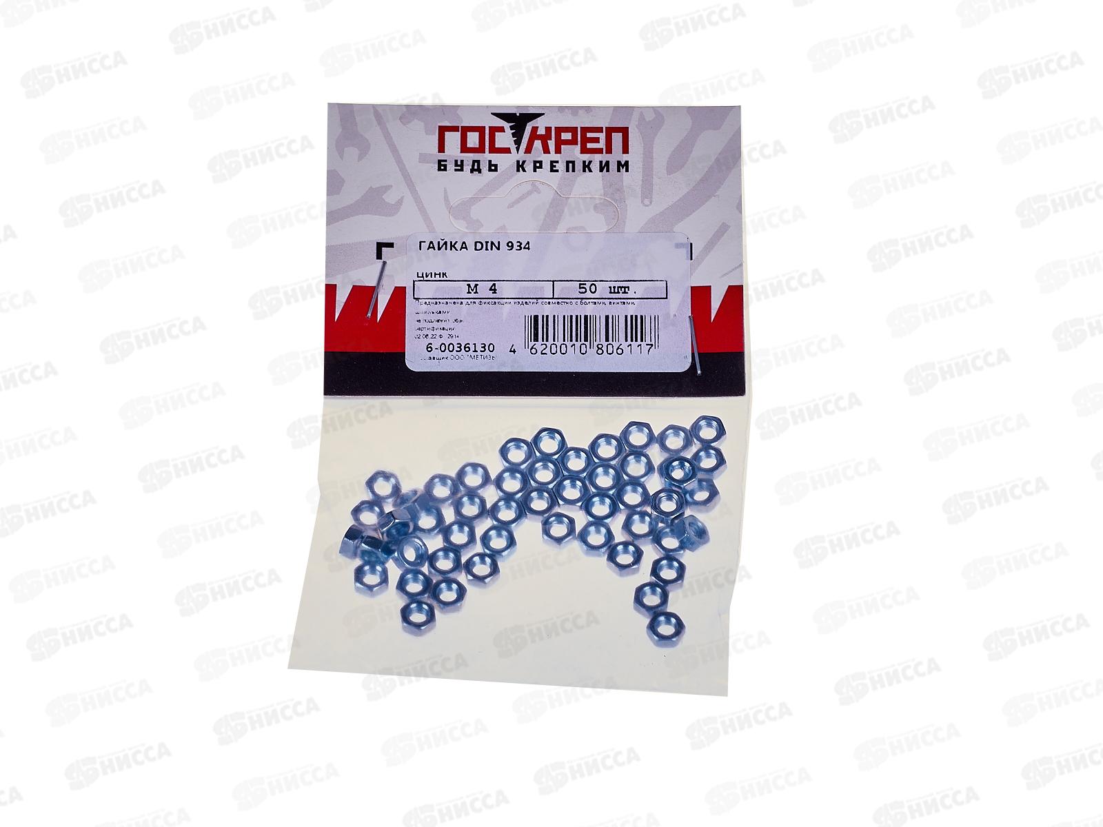 Код:353018; Гайка (DIN934) М4 (50штук) пакетик, Госкреп