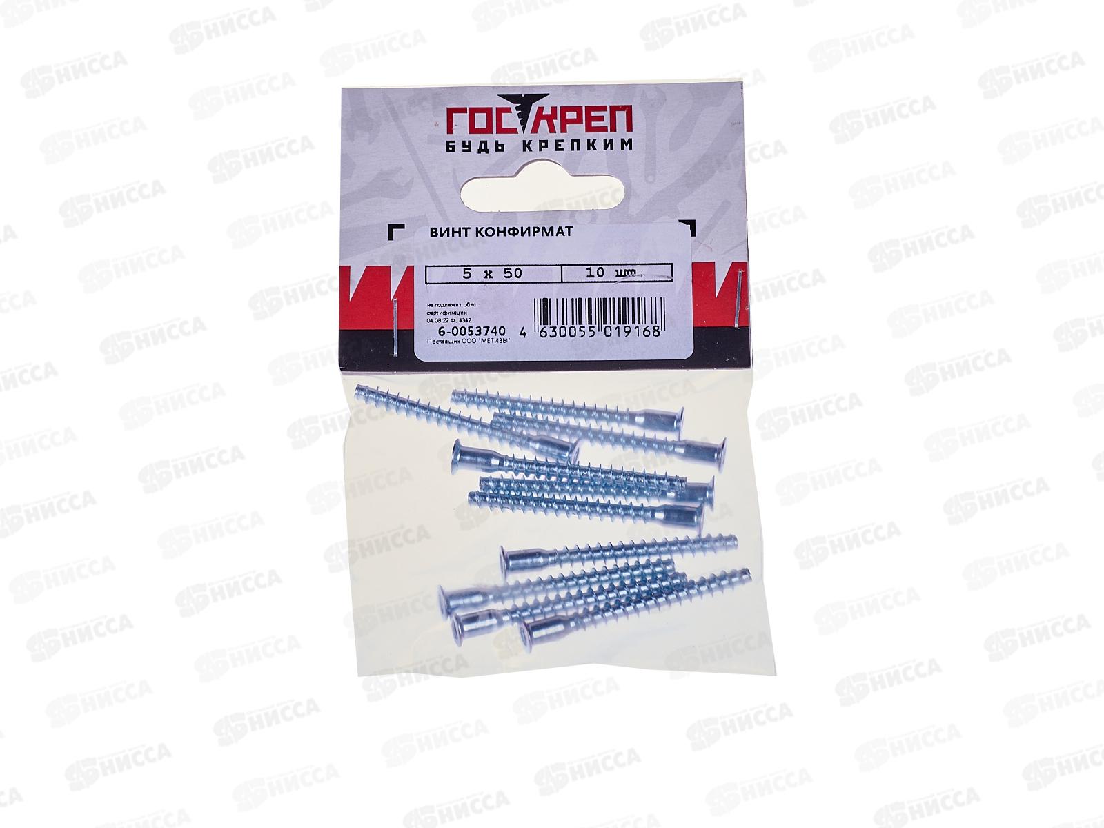 Код:435040; Винт-конфирмат 5.0*50мм под шестигранник, цинк (10шт), Госкреп