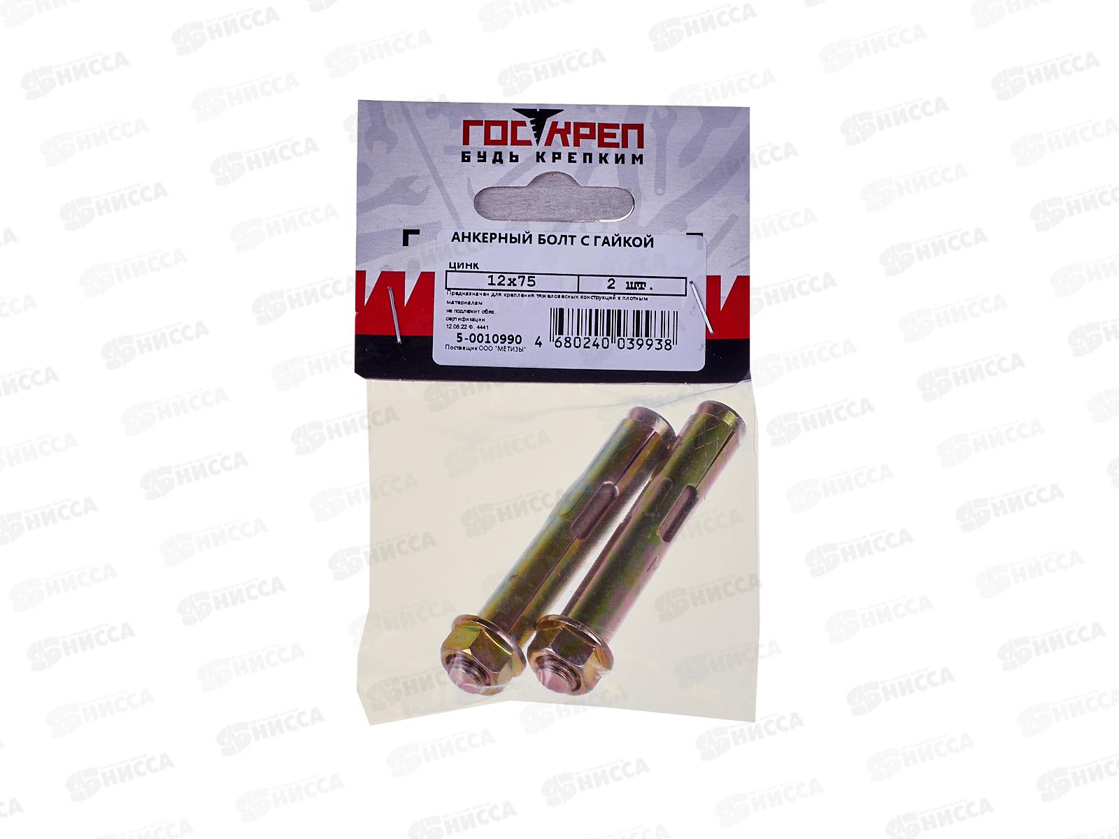 Код:456730; Анкерный болт с гайкой 12*75 2шт, пакетик, Госкреп