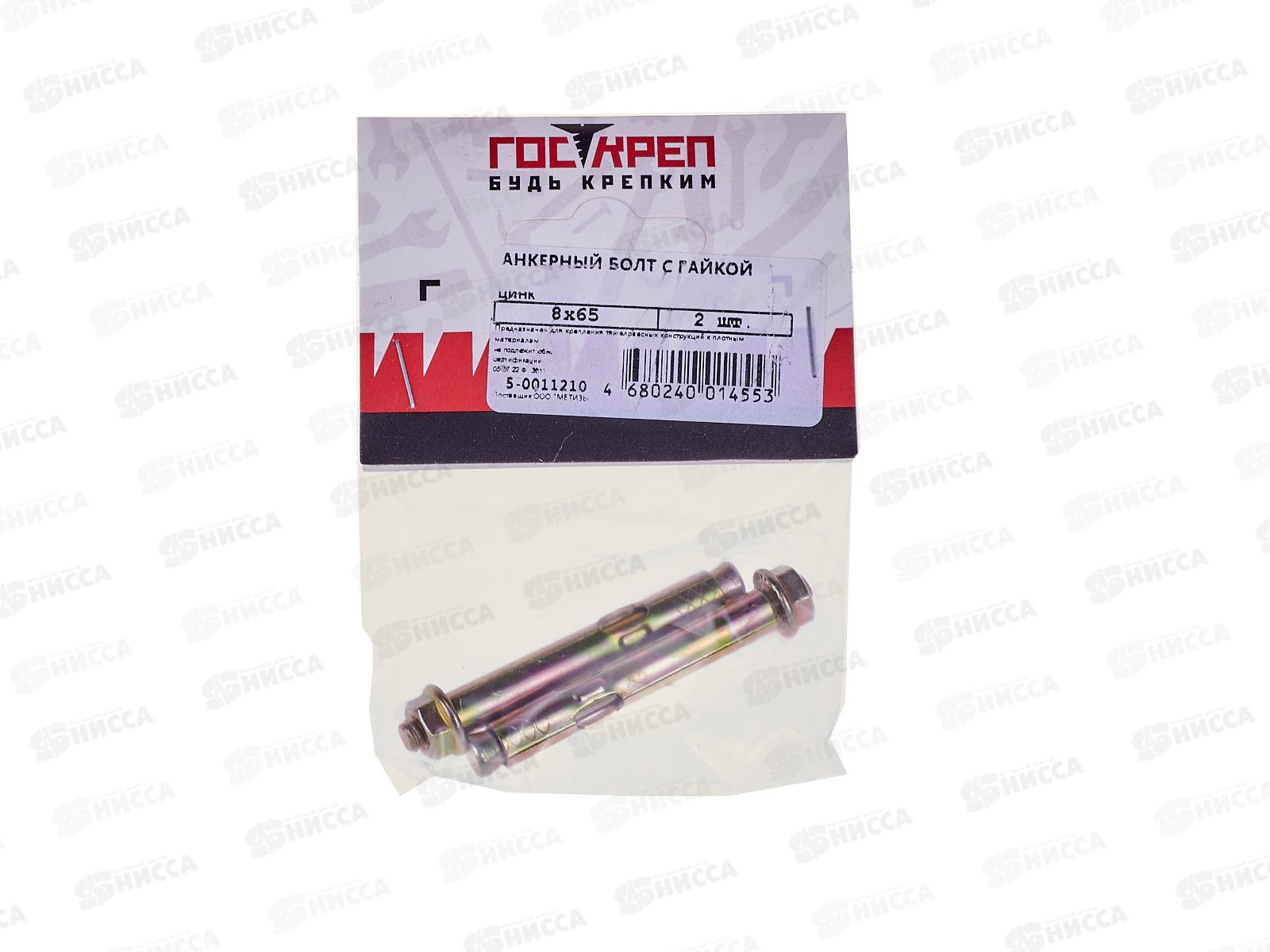 Код:456732; Анкерный болт с гайкой 8*65 2шт, пакетик, Госкреп