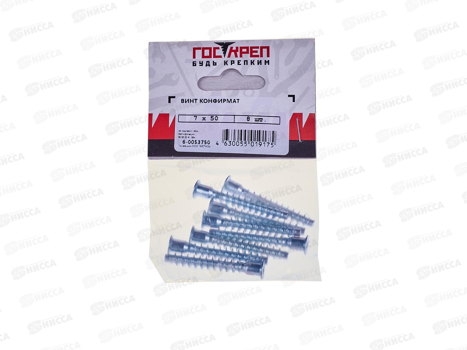 Код:456734; Винт-конфирмат 7.0*50мм под шестигранник, цинк (8шт), Госкреп