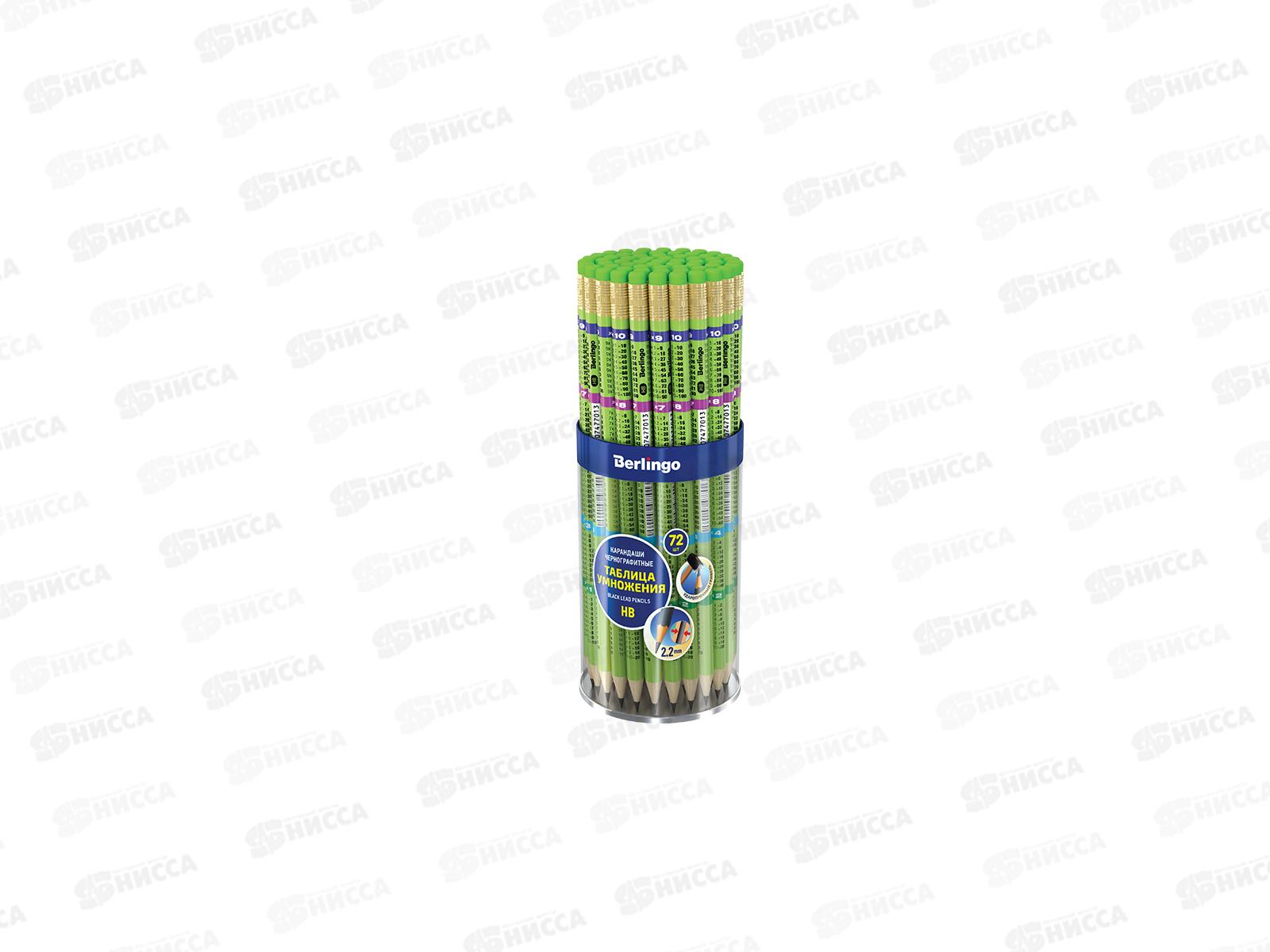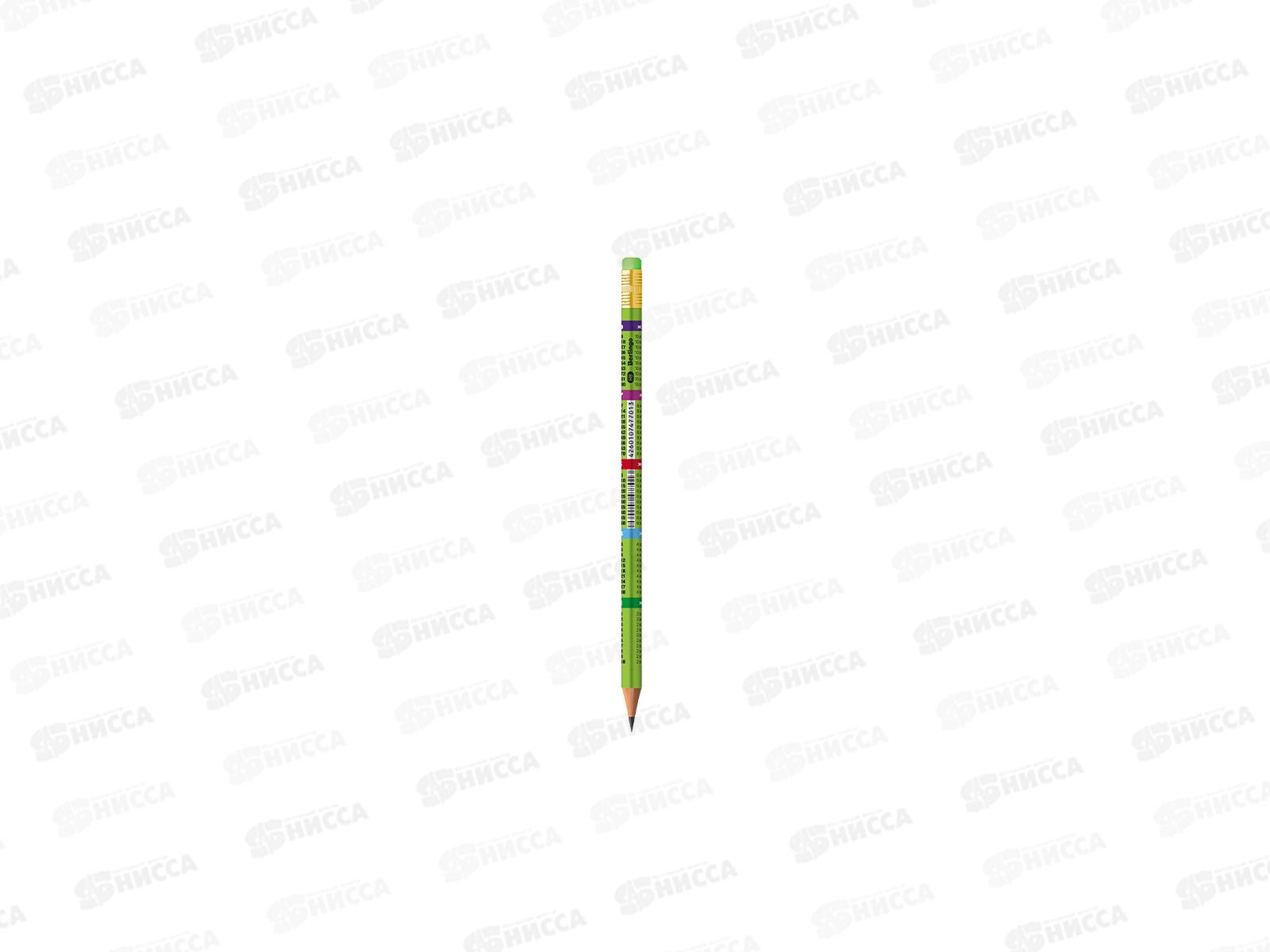 Карандаш чернографитный с ластиком Berlingo Tаблица умножения, HB заточенный ВР00910*72