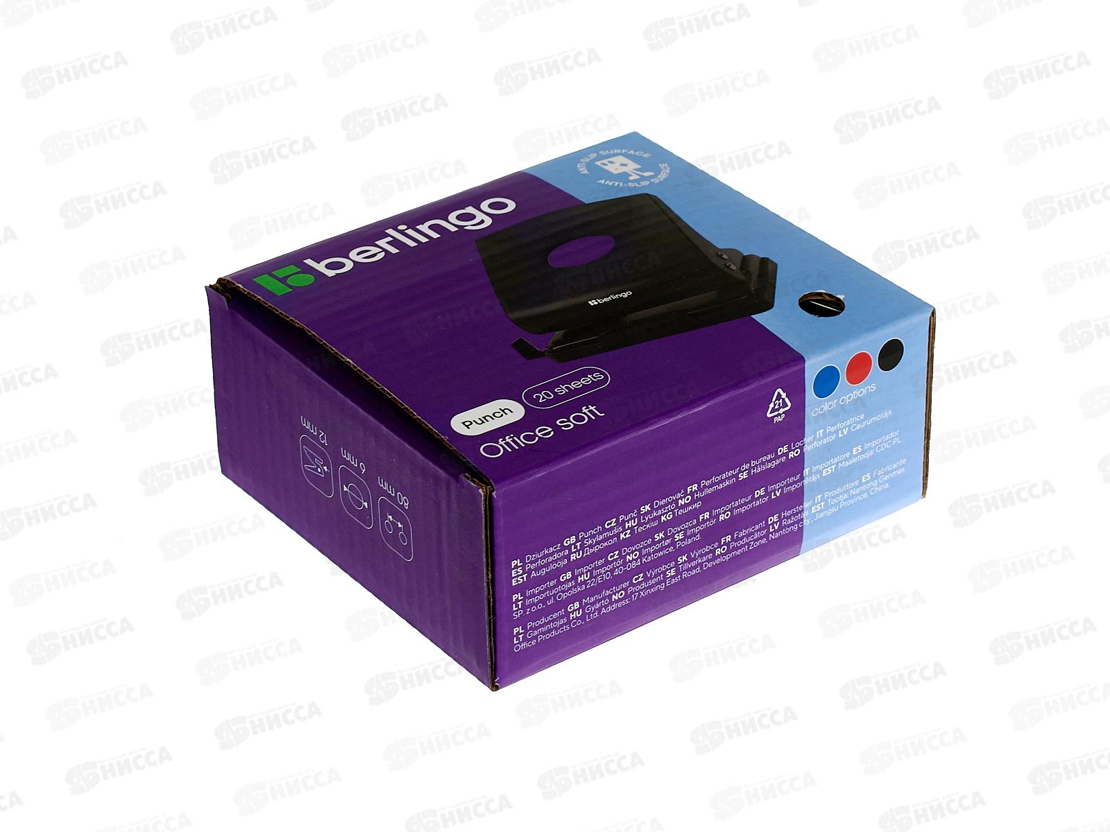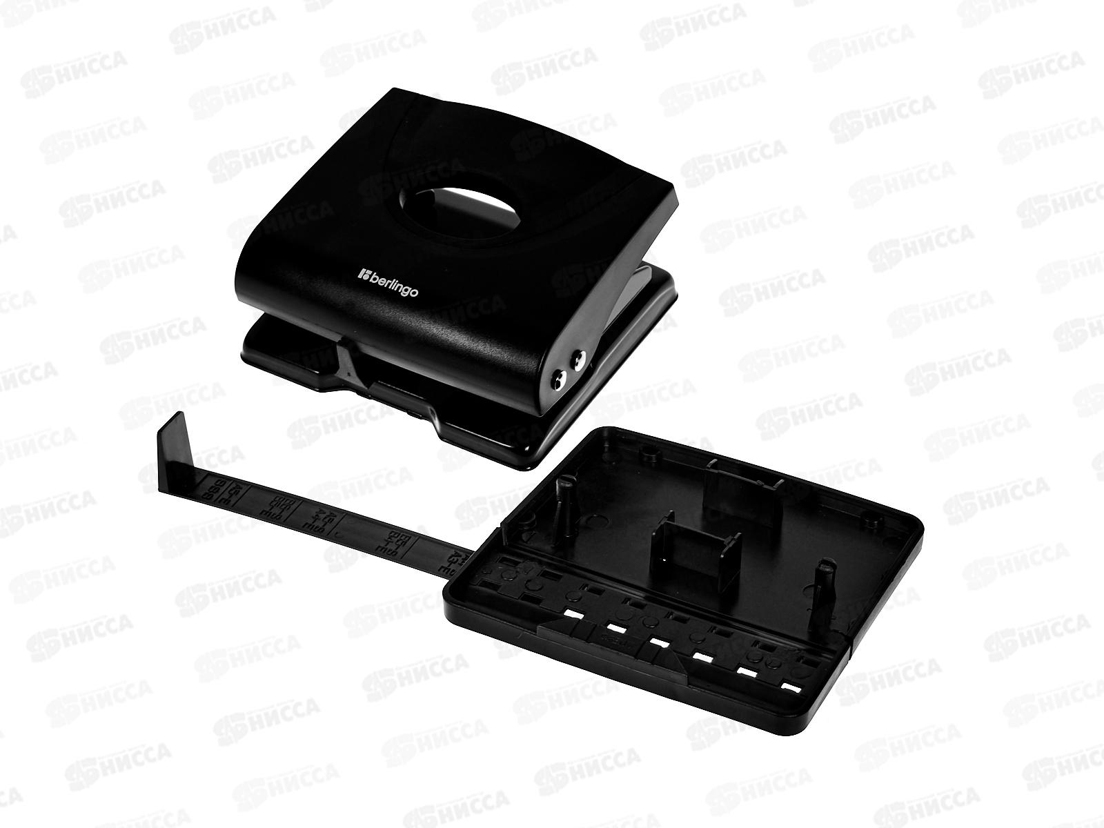 Дырокол Berlingo Office Soft 20л, пласт.,черн. с линейкой 20161