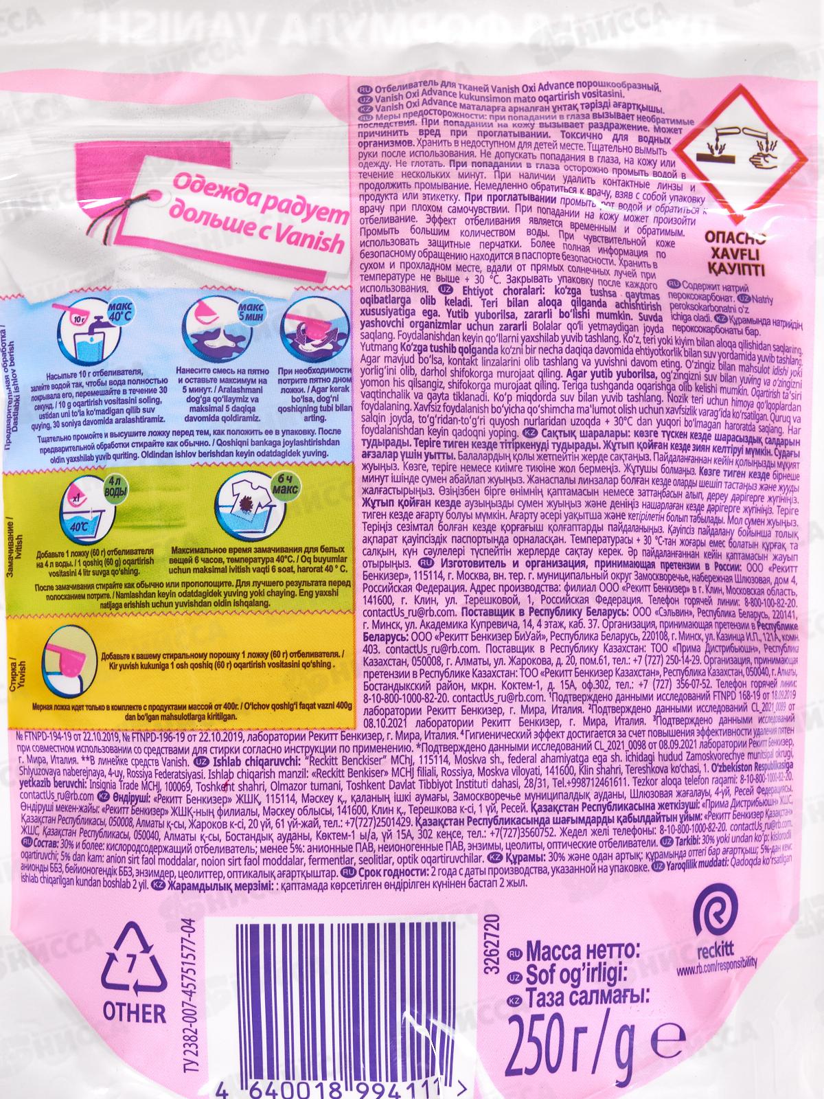 ВАНИШ OXI Advance пятновыводитель/отбеливатель 250мл порош 3143576