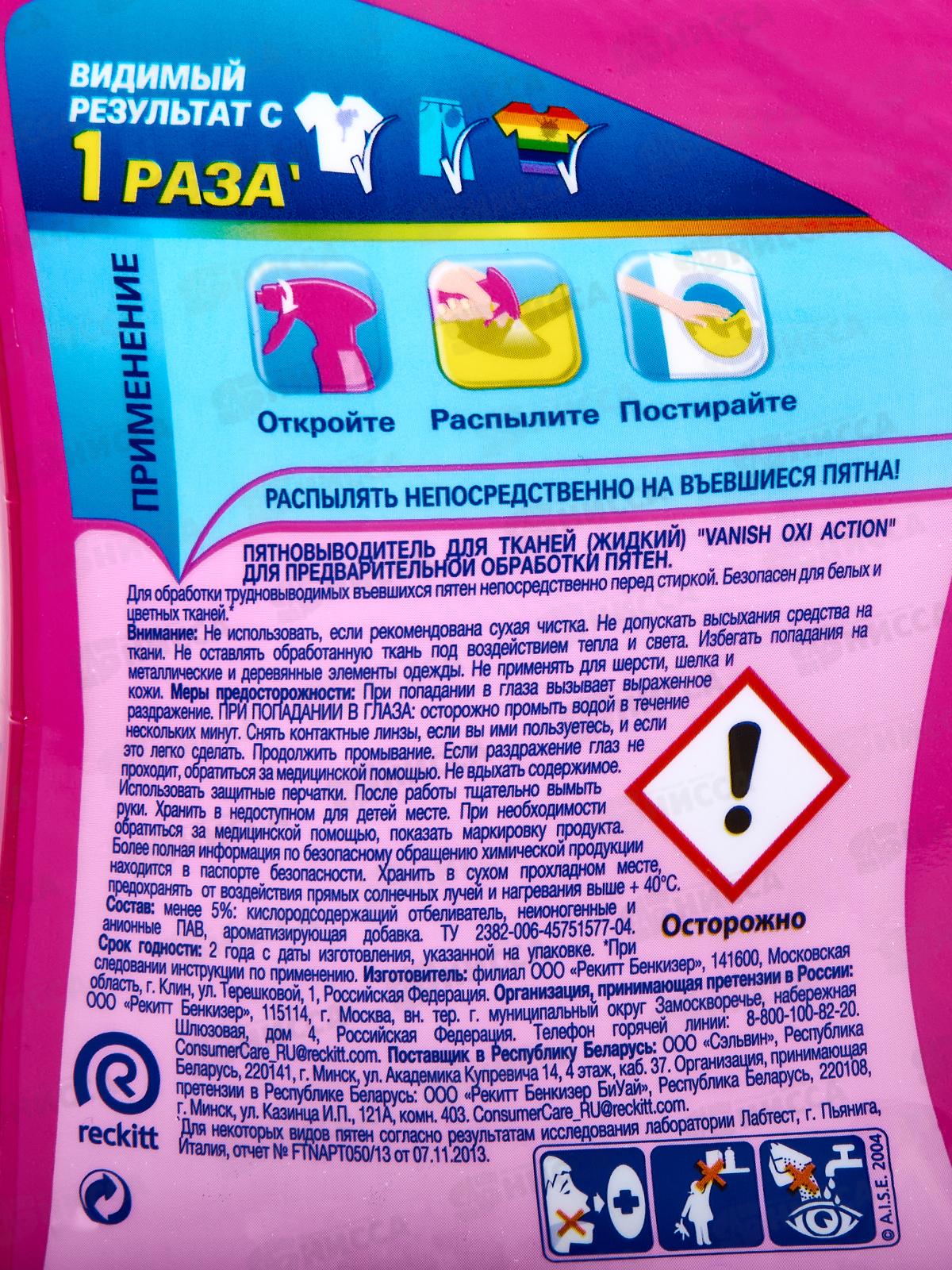 Тип товара: Пятновыводитель