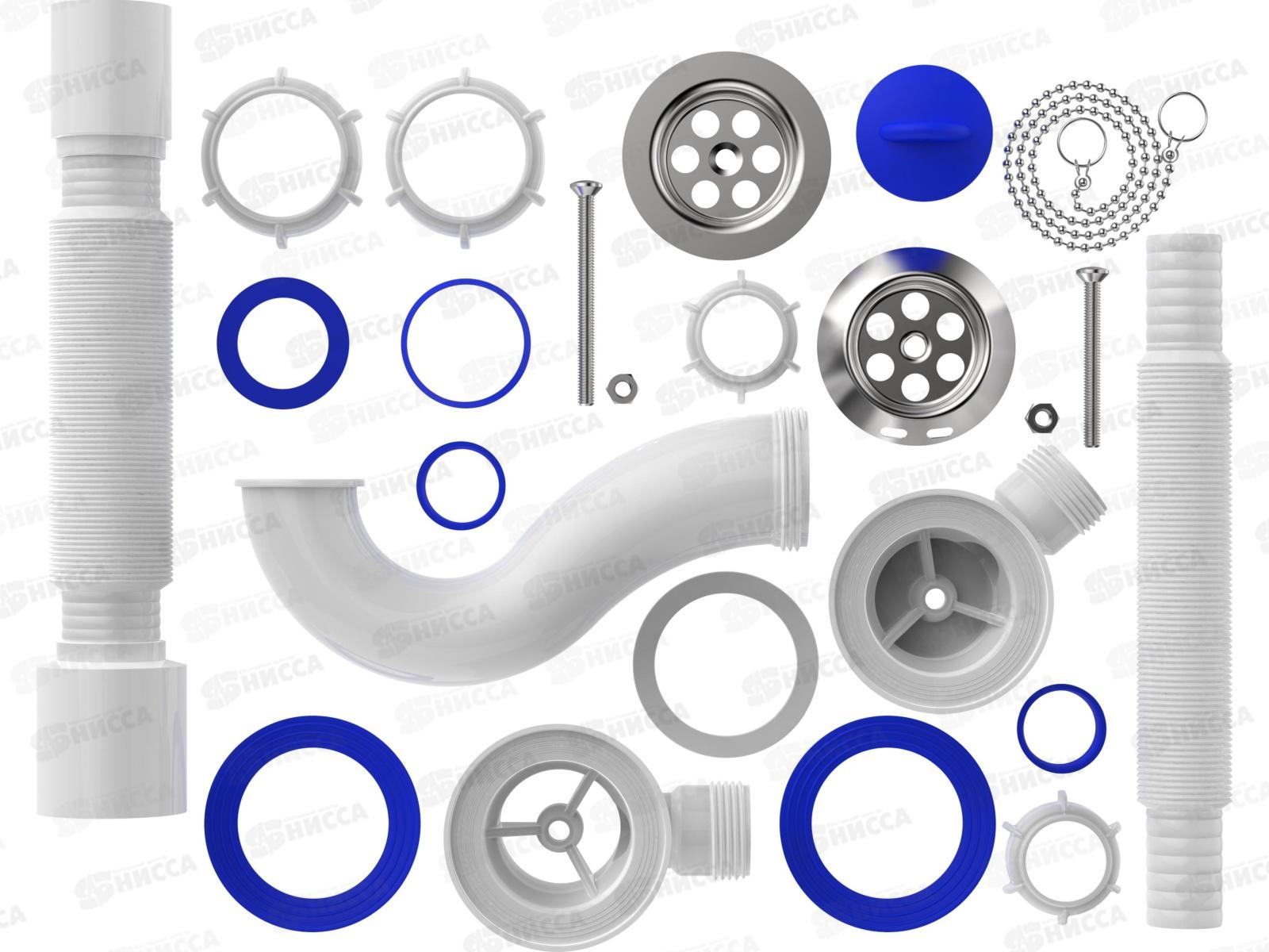 Сифон для ванн прямоточный. Подходит для всех типов ванн, в т.ч. чугунных. Решетка крепится на винт 60мм и шестигранную гайку М6. Перелив с трубкой длиной 50см и металлической решеткой. Колено сифона прямоточное, высота гидрозатвора 50 мм. Артикул идет в комплекте с гофротрубой 40х50мм и прокладкой-бабочкой из термоэластопласта (ТЭП), который не вступает в реакцию в акриловыми ваннами. Пробка для перекрытия воды из ТЭПа, на цепочке. Полная комплектация, все гайки, прокладки и схема установки в комплекте.