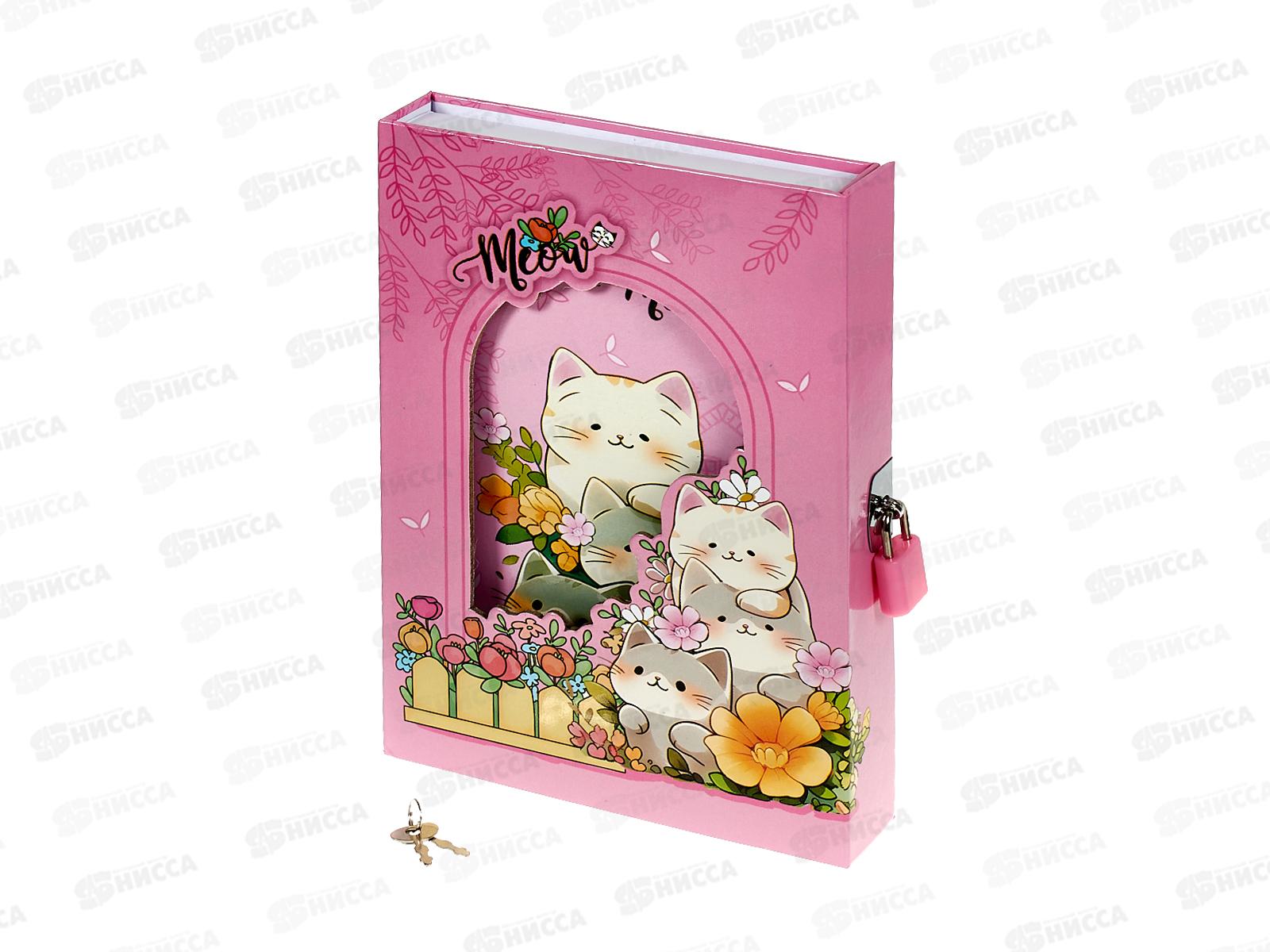 Код:565041; Блокнот подар. Alingar 45л лин "Мяу Котики" розовый, замочек AL11871