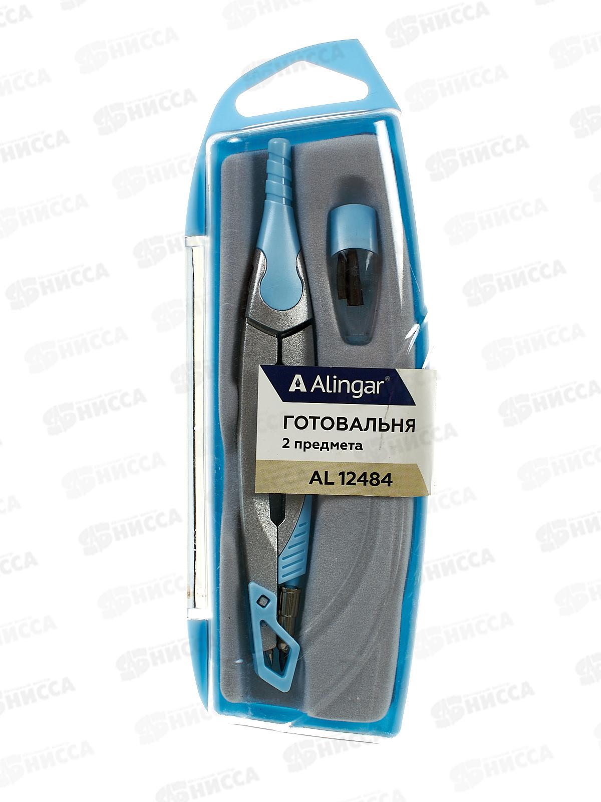 Код:589491; Готовальня Alingar 2пр., циркуль,пласт.фут.,голубой AL12484 *12