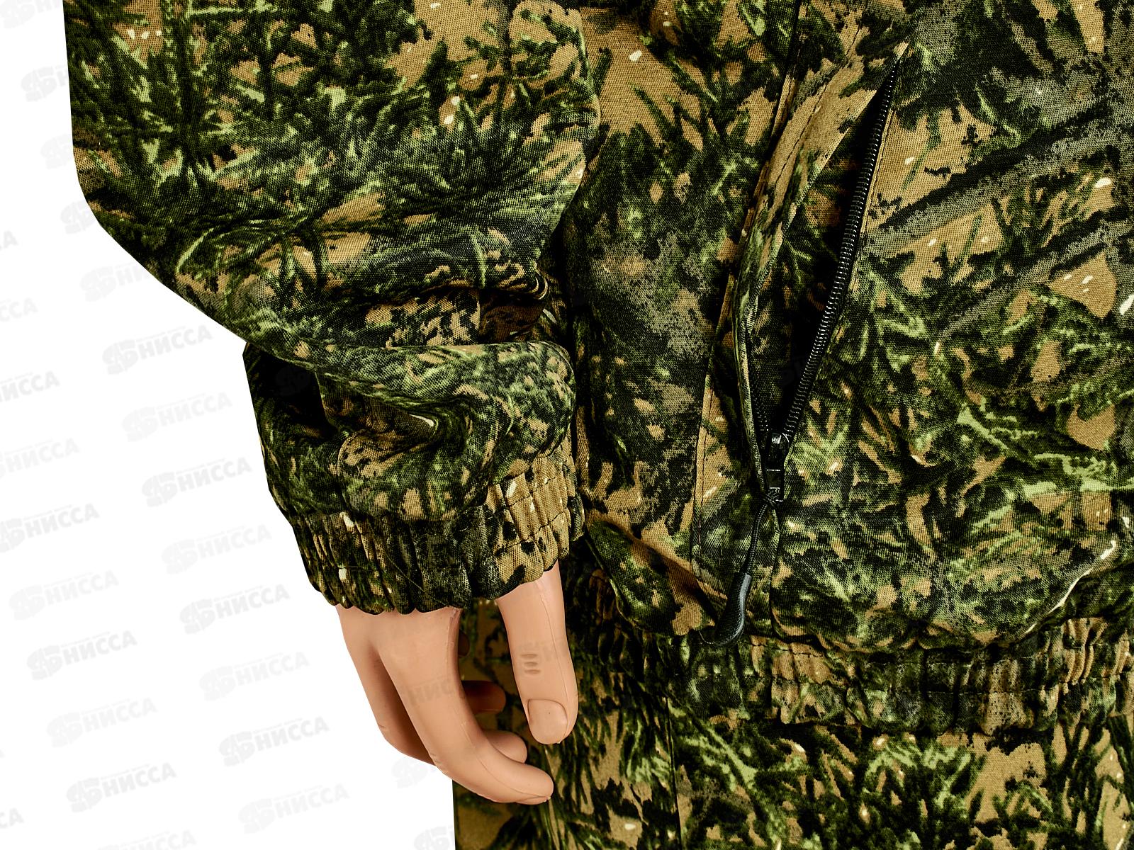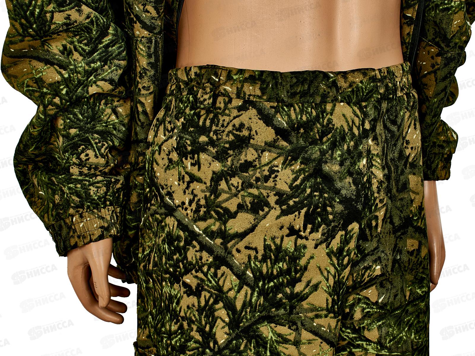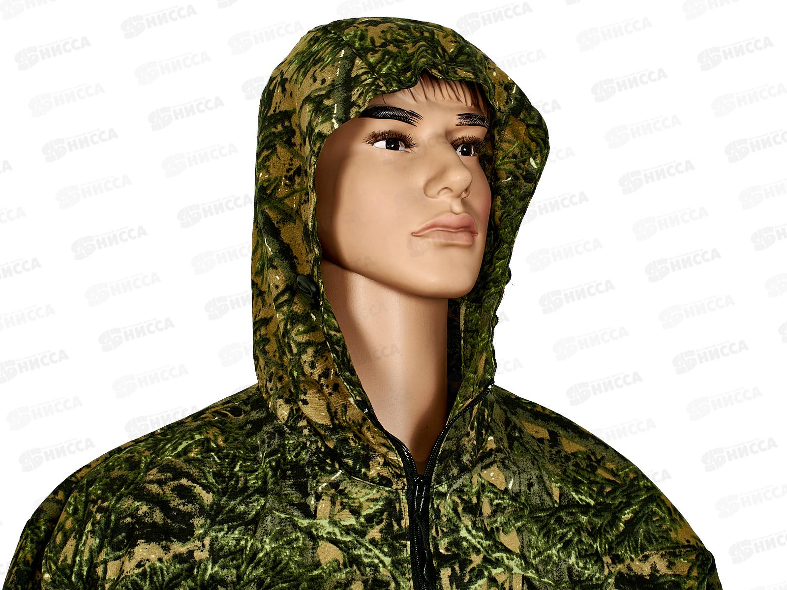 Камуфлированный унверсальный летний костюм для охоты, рыбалки и активного отдыха. Состоит из куртки с капюшоном и брюк. Куртка с регулируемым капюшоном. Центральная застежка молния. Боковые и нагрудный накладные карманы на молнии. Низ куртки и манжеты на резинке. В брюках два врезных кармана и два накладных кармана на молнии. Пояс и низ брюк на резинке.