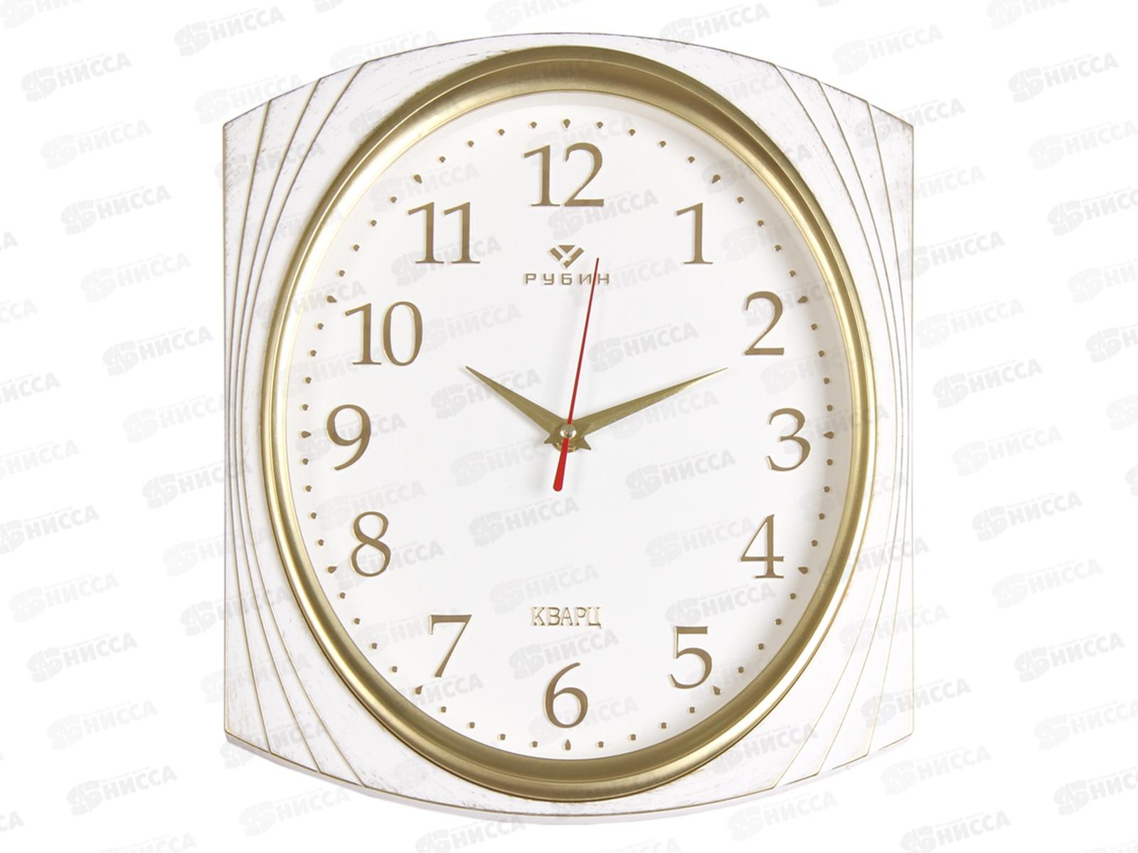 Код:472589; Часы настенные "21 Век" 2832-002 Прямоугольные. Корпус белый с золотым. Рубин