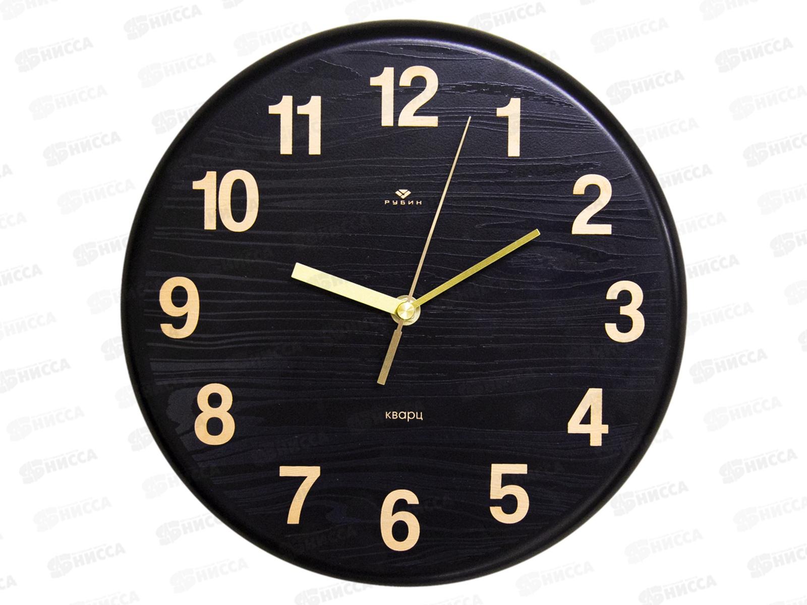 Код:540329; Часы настенные "21 Век" 2626-004 из металл, черный Текстура дерева Рубин