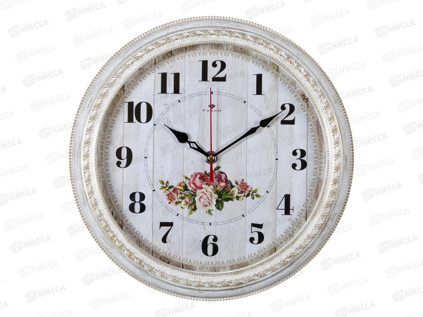 Код:540342; Часы настенные "21 Век" 2950-108 Садовые розы белый с золотом круг Рубин