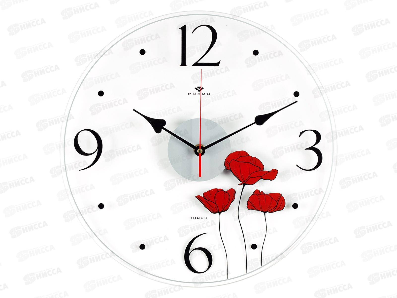 Код:532691; Часы настенные "21 Век" 3433-002 "Маки" прозрачные