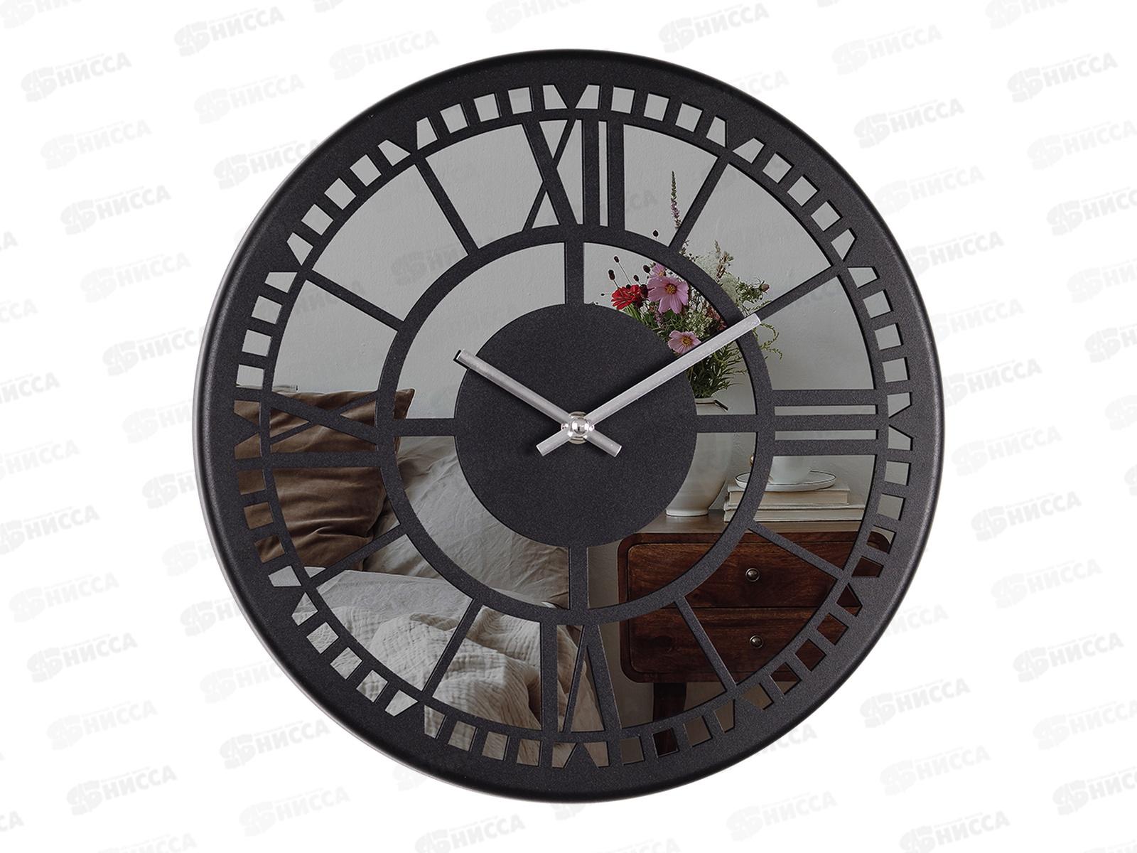 Код:540357; Часы настенные "21 Век" 3230-004 Классика металл+зеркало черный Рубин