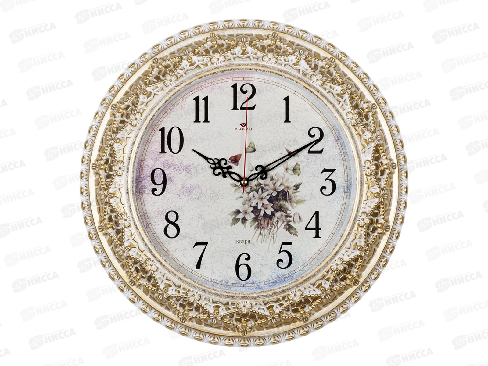 Код:540365; Часы настенные "21 Век" 3825-003 Полевые цветы белый с золотом Рубин