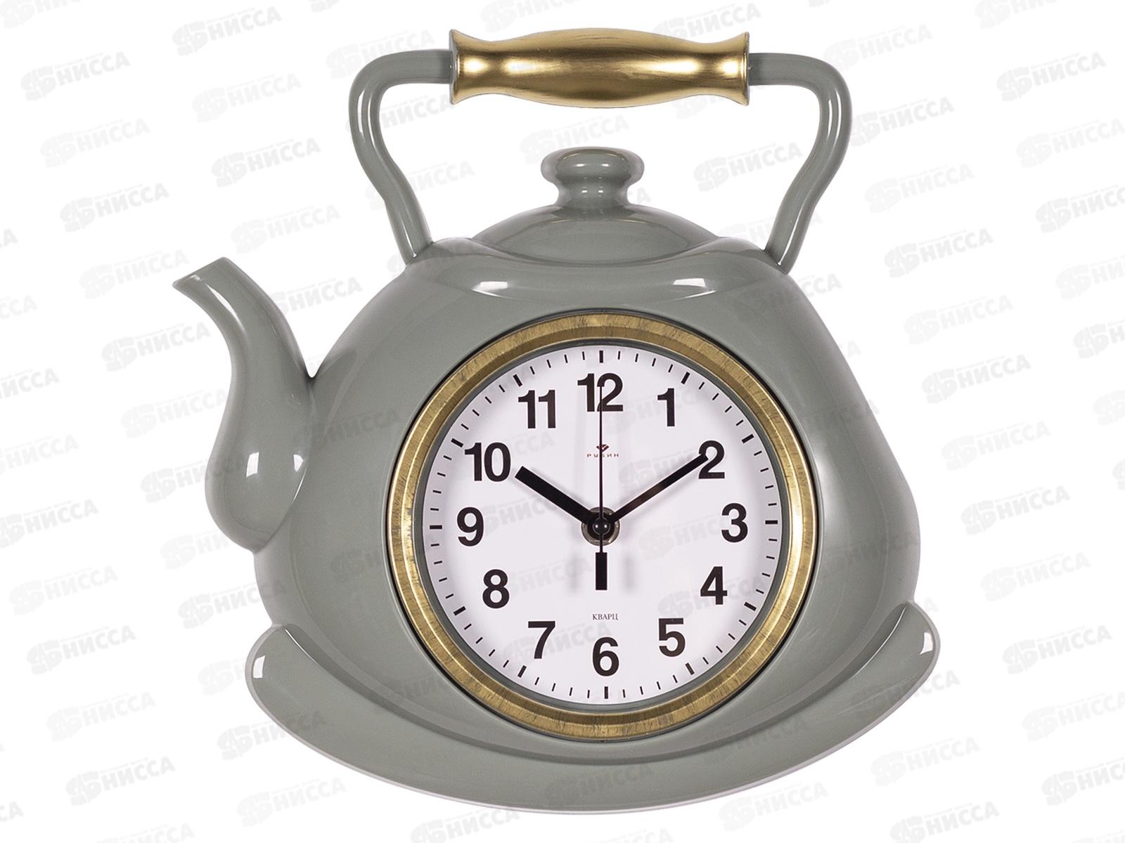 Код:550796; Часы настенные "21 Век" 3129-004 чайник, корпус оливковый с золотом "Классика" Рубин