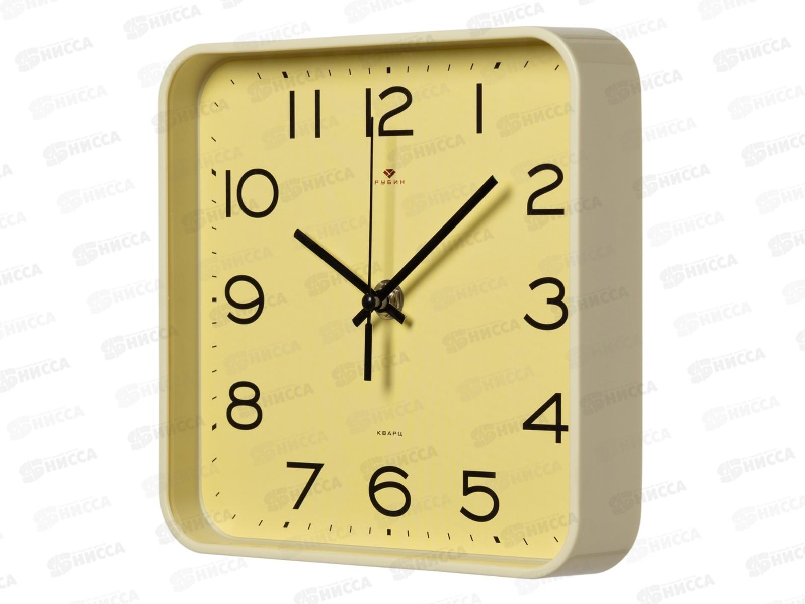 Часы "21 Век" 1918-008 квадрат Рубин d-19*19см желтый. Классика