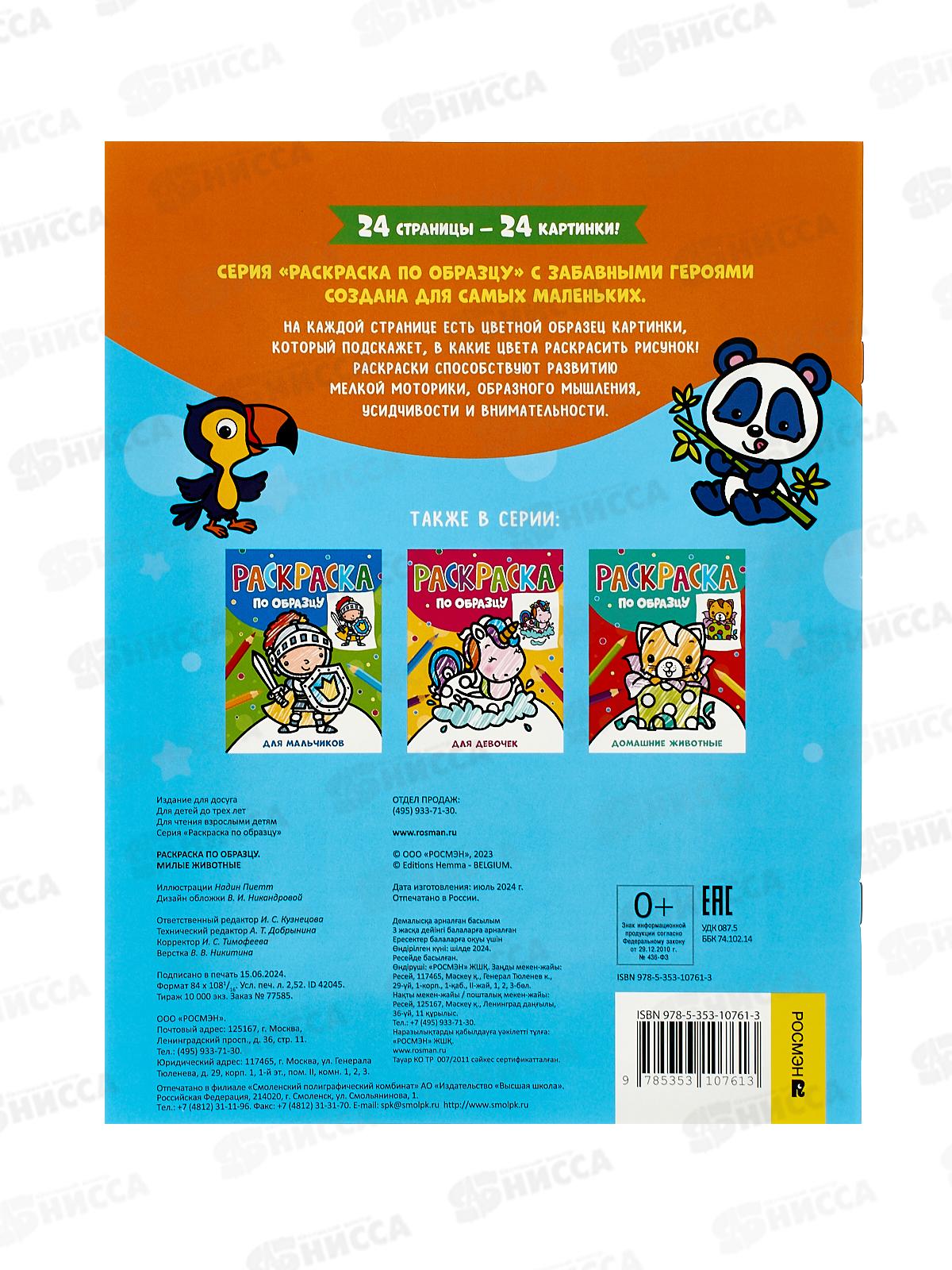 Серия «Раскраска по образцу» с забавными героями создана для самых маленьких. На каждой странице есть цветной образец картинки, который подскажет, в какие цвета раскрасить рисунок! Раскраски способствуют развитию мелкой моторики, образного мышления, усидчивости и внимательности.