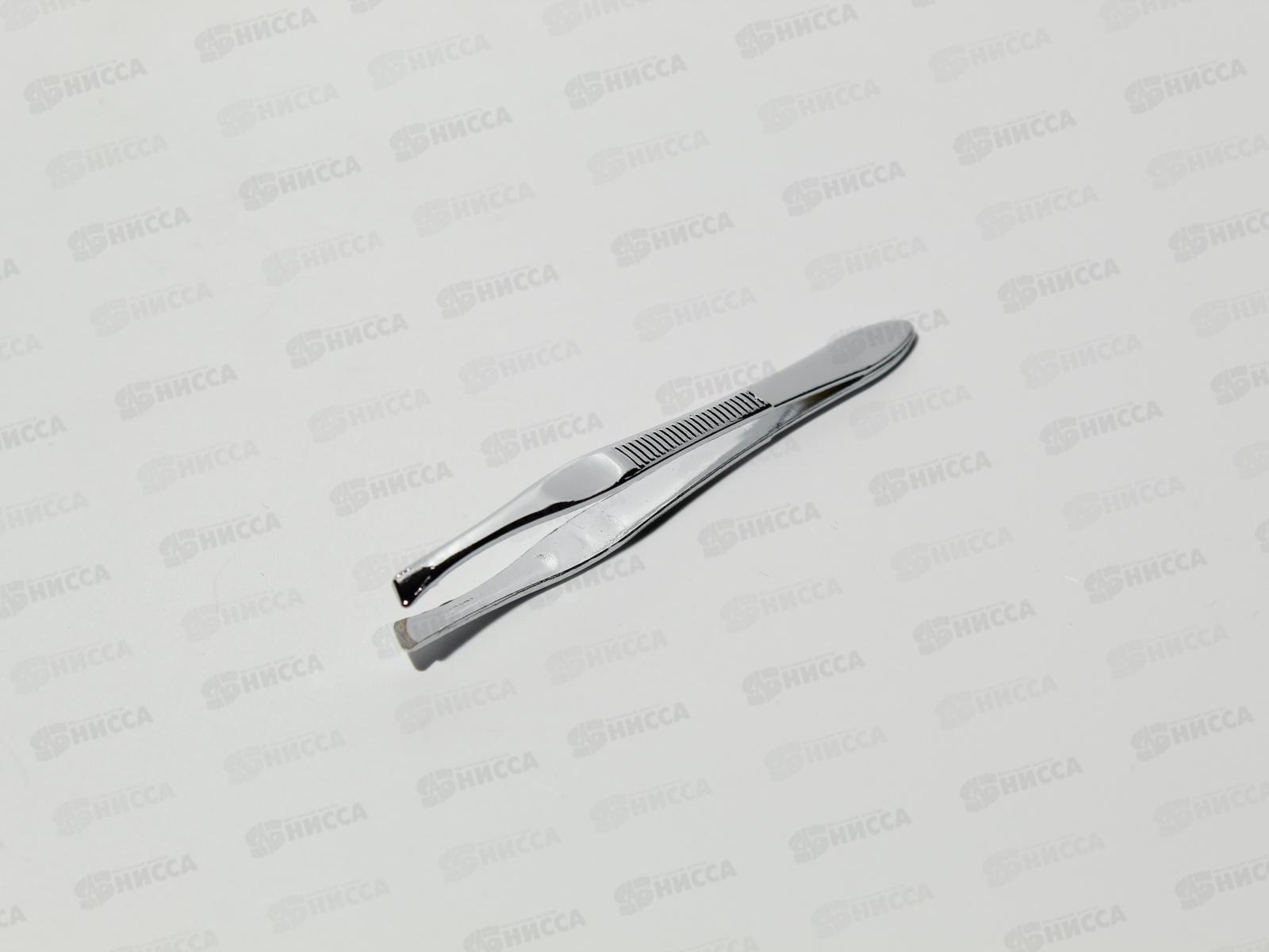 Код:369653; Trendy Щипчики для бровей прямые серебро в индивидуальной упаковке Т-818М