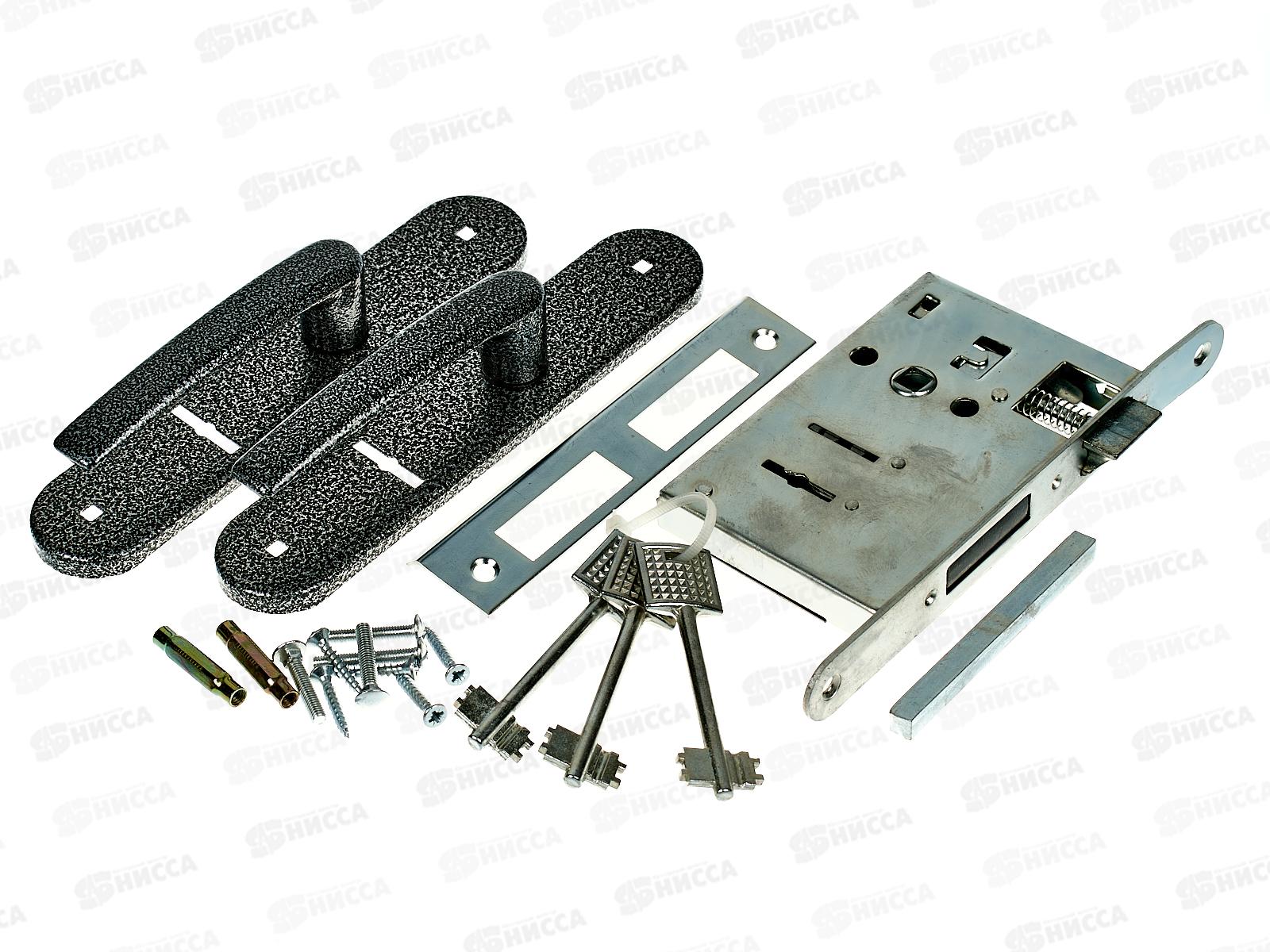 Код:506361; Замок врезной Птимаш ЗВ4-3.08 серебро шуруп с ручкой *10 8 459