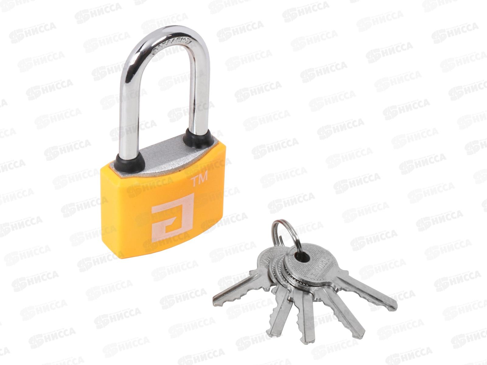 Замок навесной, шириной 38 мм, высотой 60 мм и закаленной дужкой диаметром 7 мм, предназначен для запирания дверей жилых и подсобных помещений. Изгото...