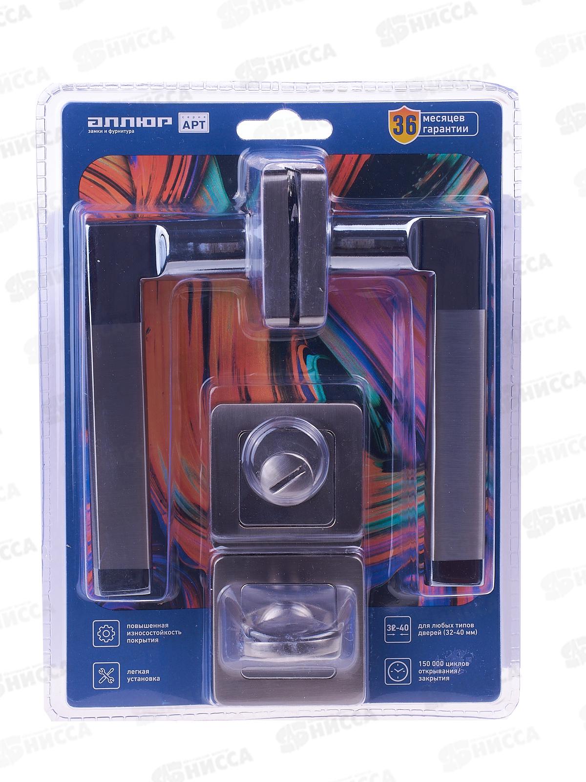Комплект: ручка на квадратной накладке, сантехническая завертка и защелка с фиксациейХарактеристики:Торговая марка: АллюрСерия: АРТМодель: "Венсан...