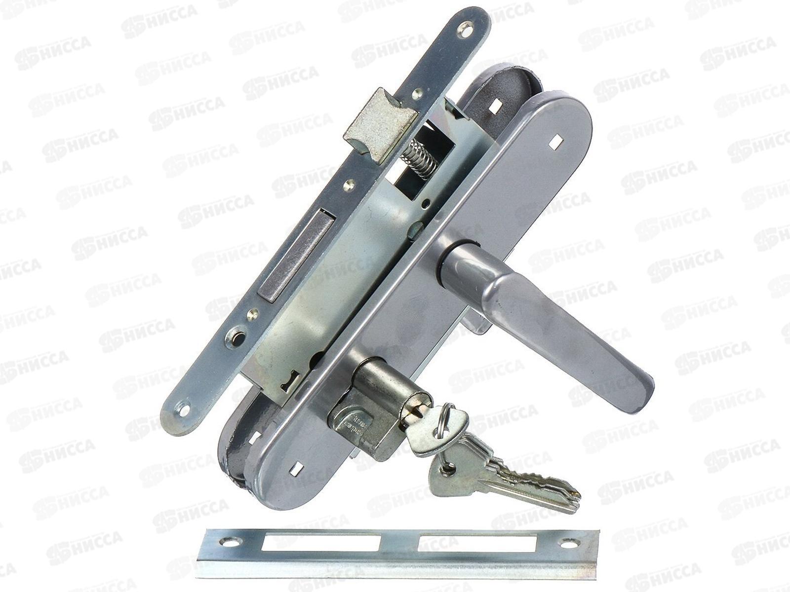 Код:506361; Замок врезной Птимаш ЗВ4-3.08 серебро шуруп с ручкой *10 8 459