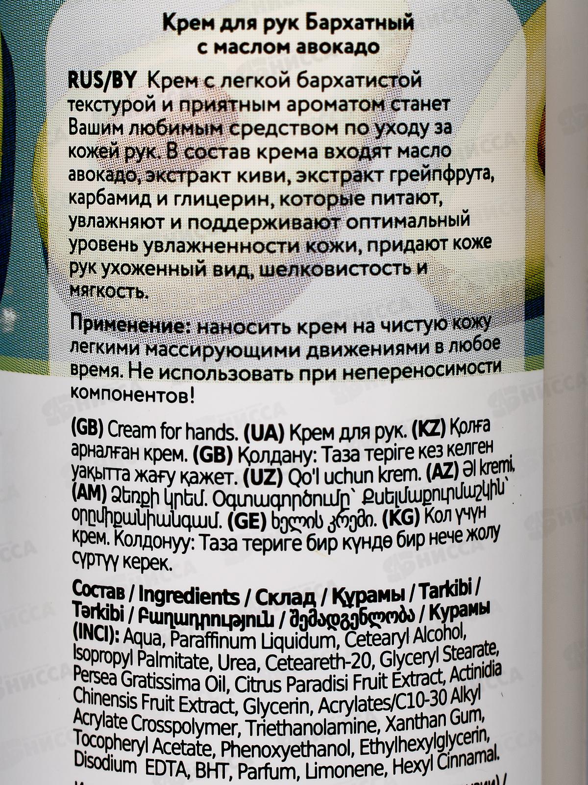Свобода БАРХАТНЫЙ крем ддя рук с маслом Авокадо 185мл *15