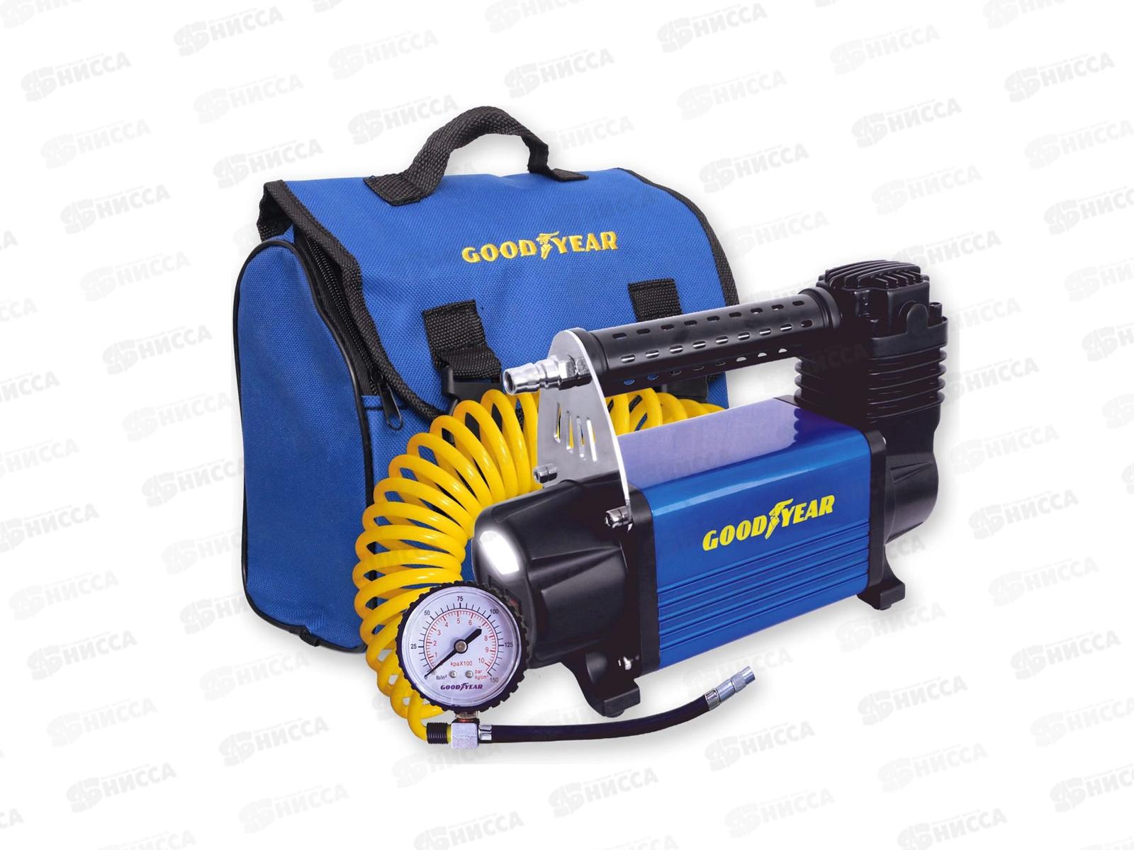 Компрессор воздушный Goodyear GY-50L LED 50л/мин с фонарём, питание от АКБ, съемный витой шланг, сумка для хранения