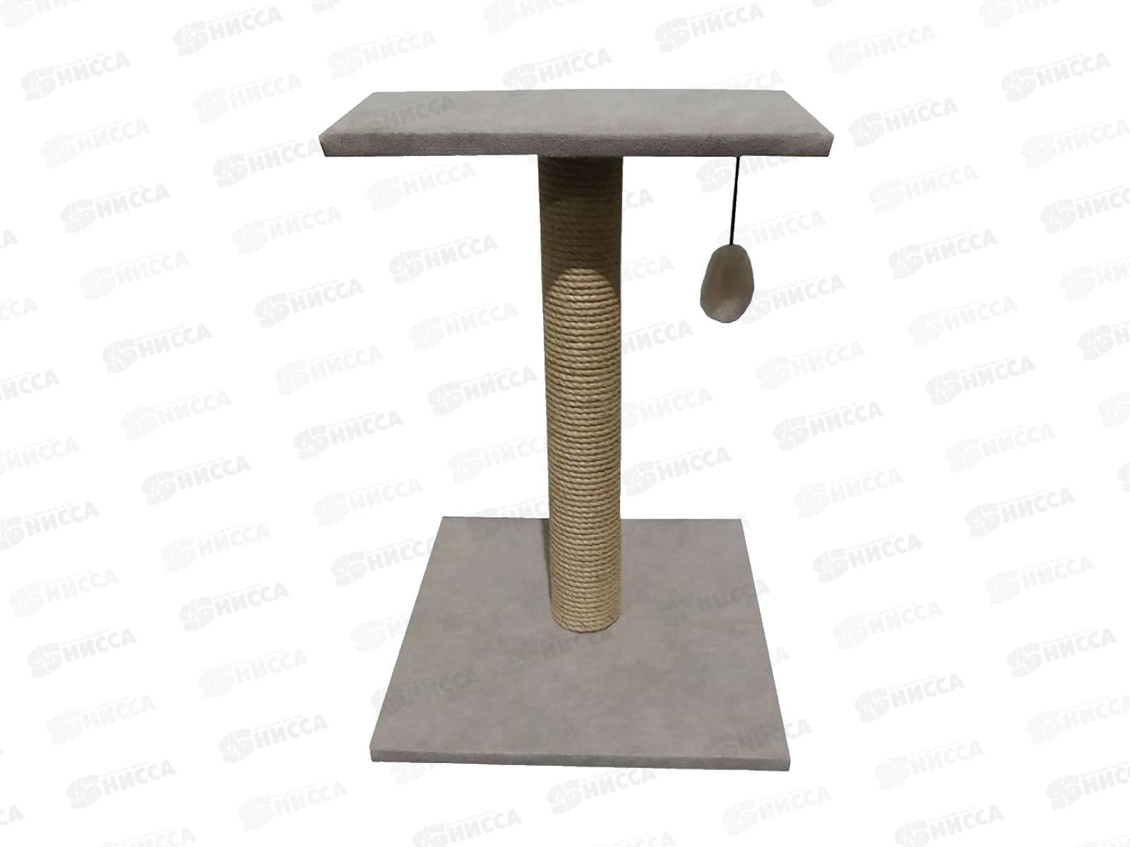 Когтеточка изготовлена из ткани антикоготь и джутовой веревки. Размер основания - 35х35 см, полка - 16,5х35 см, столбик - 47,5 см.