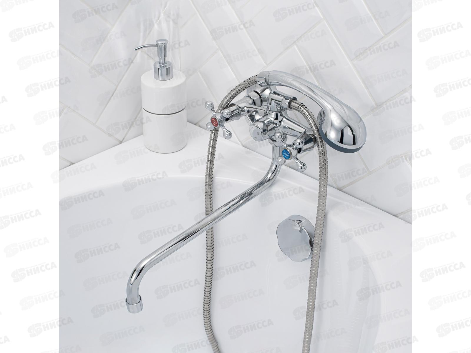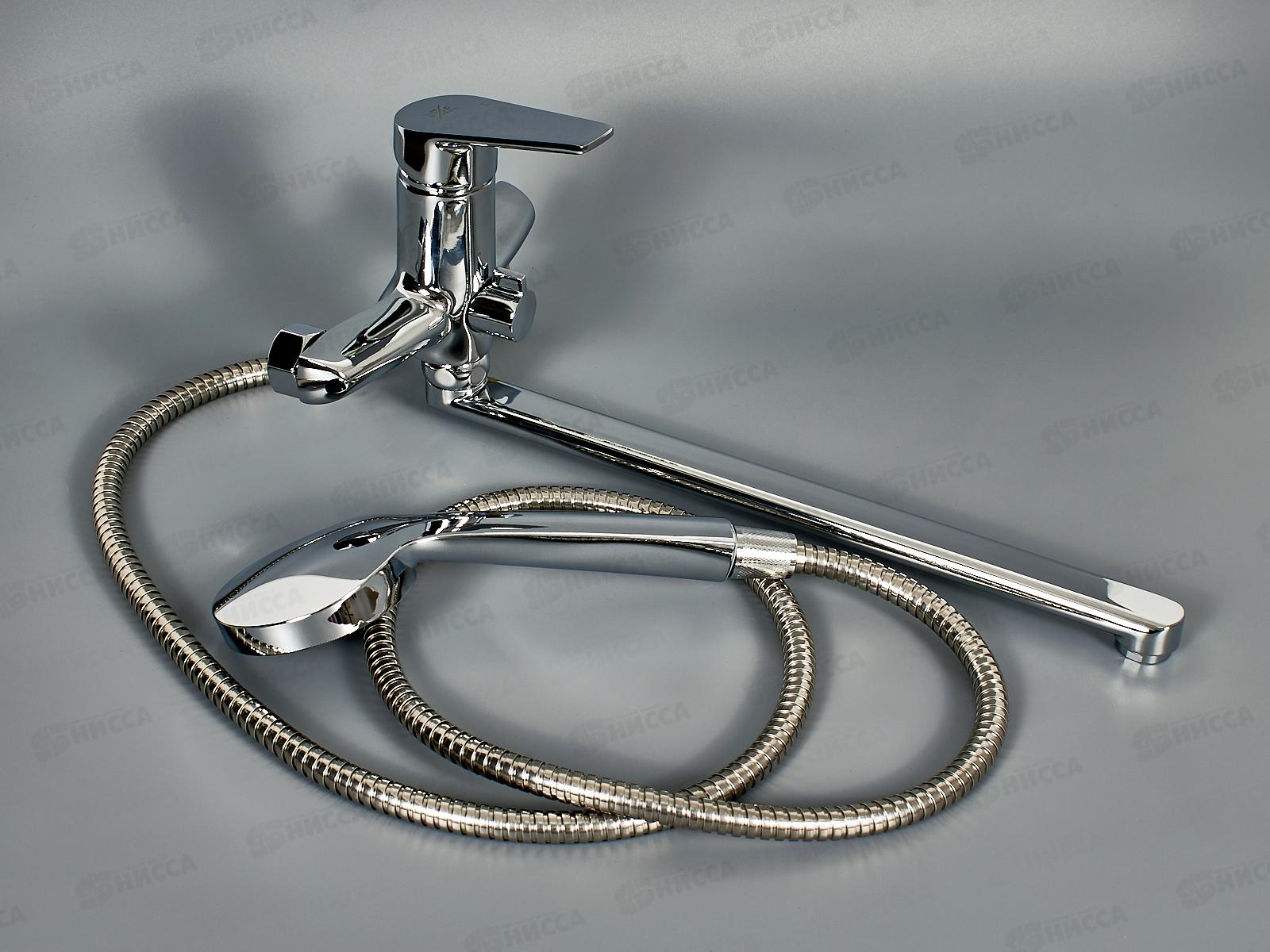 Смеситель для ванны с длинным поворотным изливом. Картридж керамический 35мм, переключение на душ картриджное с нажатием. Аэратор - пластиковый.Характ...